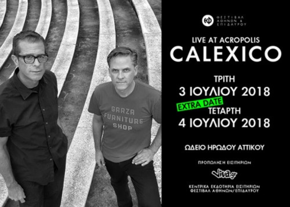 Mετά τους Foo Fighters που εμφανίστηκαν περσι στο Ηρώδειο, σειρά παίρνουν φέτος οι Calexico και μάλιστα δεν θα παίξουν μόνο μια μέρα, αλλά δυο. Aρχικά ήταν προγραμματισμένη μια εμφάνιση, αλλά η ζήτηση ήταν τόσο μεγάλη που προστέθηκε και η δεύτερη. Ακομά μια αγαπημένη μπάντα του ελληνικού κοινού λοιπόν, θα βρίσκεται σε λίγες μέρες στη χώρα μας. Στις αποσκευές της, πέρα από τις παλιές και κλασσικές επιτυχίες τους, φέτος φέρνουν και το νέο άλμπουμ τους "The Τhread Τhat Κeeps Us", το οποίο το βρήκα καλό και νομίζω ότι έδειξε ότι το Εξ Αμερικής ντουέτο έχει ακομά μέσα της μια φρεσκάδα. Το μαγικό χαρτάκι για την πρώτη μέρα κοστίζει από 40 εώς 50 ευρώ, ενώ για την δεύτερη από 33 εώς 60 ευρώ. Απ' όσο γνωρίζω και οι δυο μέρες πάνε πρόσω ολοταχώς για sold out, οπότε όσοι θέλετε να πάτε και δεν έχετε πάρει ακόμα το εισιτήριό σας, τρέξτε να προλάβετε.