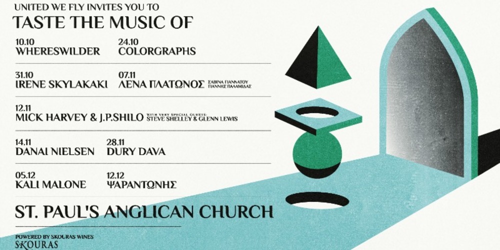 Το Taste The Music της United We Fly, δηλαδή μια σειρά συναυλιών που έλαβαν χώρα στην Αγγλικανική Εκκλησία του Αγίου Παύλου, με χορηγό τα κρασιά του Κτήματος Σκούρα, μας συστήθηκε τον Φλεβάρη του 2019. Η πρώτη συναυλία που πραγματοποιήθηκε ήταν αυτή του εξαίσιου και ξεχωριστού Theodore. Στην συνέχεια ακολούθησαν άλλες 7 πολύ δυνατές συναυλιακές βραδιές με τους Electronik Meditation, SWORR, Sofia Sarri & Petros Lamprides, Τεφλόν, Moa Bones, Vassilina και Afformance.