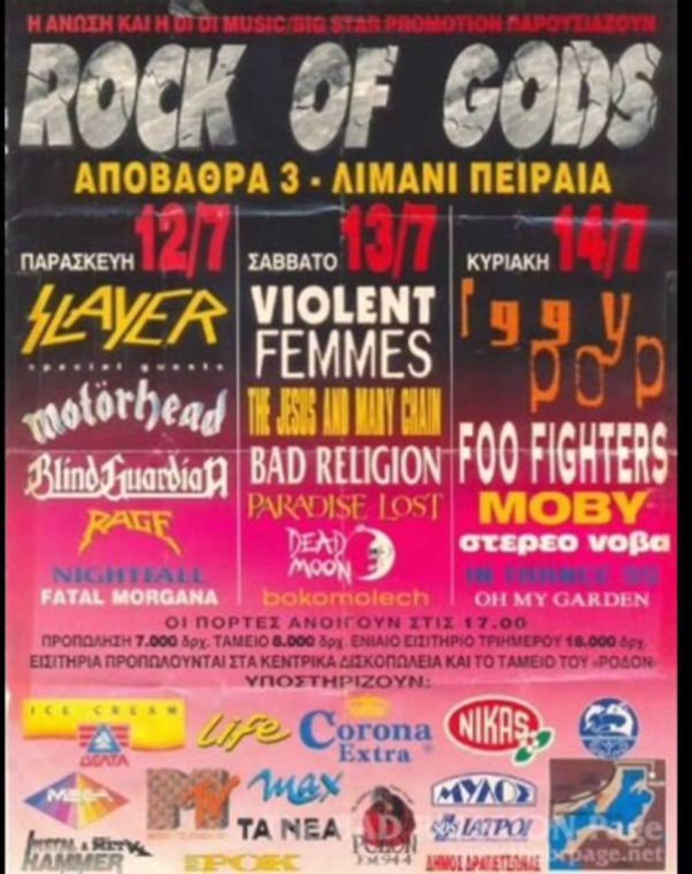 12 Ιουλίου 1996. Το θρυλικό Rock of Gods φέρνει για πρώτη φορά στην Ελλάδα τους ηγέτες του thrash metal, Slayer.