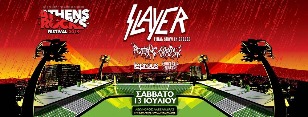 Η ευχή τους, λοιπόν, έγινε πραγματικότητα! Στις 13 Ιουλίου, οι Slayer θα εμφανιστούν στο γήπεδο Απόστολος Νικολαίδης, στο γήπεδο της Λεωφόρου, απέναντι από τα προσφυγικά της Αλεξάνδρας, στους Αμπελοgarden, δίπλα στον Τάφο του Ινδού, στο αρχαιότερο, εν ενεργεία γήπεδο στην Ελλάδα. Ένα εμβληματικό γήπεδο με τεράστια ιστορία.