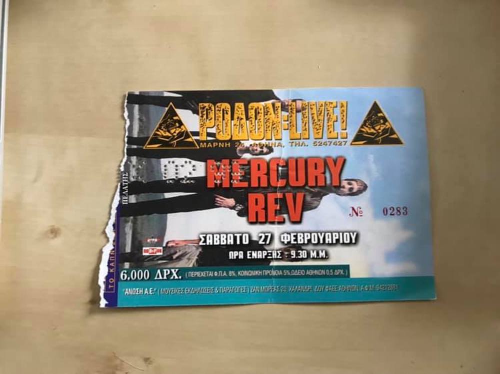 Ξαναβρήκα τα περισσότερα από τα παλιά μου εισιτήρια από συναυλίες πριν λίγες μέρες, οπότε σκέφτηκα να ανεβάζω εδώ και στο Instagram ανά τακτά χρονικά διαστήματα το εισιτήριο μια συναυλίας που έχει γίνει την ίδια ημερομηνία στο παρελθόν, ώστε να θυμόμαστε καμία ωραία ή και όχι τόσο ωραία ιστορία. Δυστυχώς πολλά εισιτήρια τα έχω χάσει ( άτιμες κωλότσεπες) και εννοείται πως πολλοί φίλοι -για να προλάβω τους καλοθελητές- έχουν δει πολλά περισσότερα live από εμένα. Θα εστιάσω στις εγχώριες συναυλίες με ελάχιστες εξαιρέσεις από live στο εξωτερικό. Αρχή με την πρώτη συναυλία των Mercury Rev στην χώρα μας. Ρόδον 27 Φεβρουαρίου 1999.