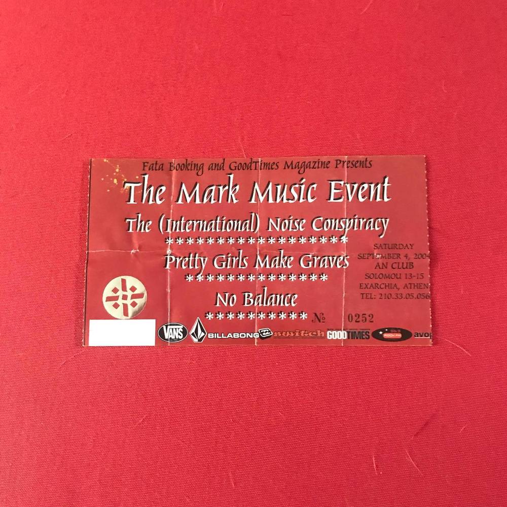Le Tigre, Bios. Ναι, αυτό είναι το κανονικό εισιτήριο. Οι Le Tigre ήταν να παίξουν στο πλαίσιο του G Fest στο Beach Volley με ένα εξωφρενικό line up (Aphex Twin - Le Tigre - FourTet - Kid 606). Φυσικά η μέρα ακυρώθηκε λίγο πριν και τελευταία στιγμή ανακοινώθηκε πως θα παίξουν οι Le Tigre στο bios. Έσταζε και λίγο το ταβάνι στην κονσόλα για να καθυστερήσει και λίγες ωρίτσες η συναυλία, αλλά όλα καλά τελικά.