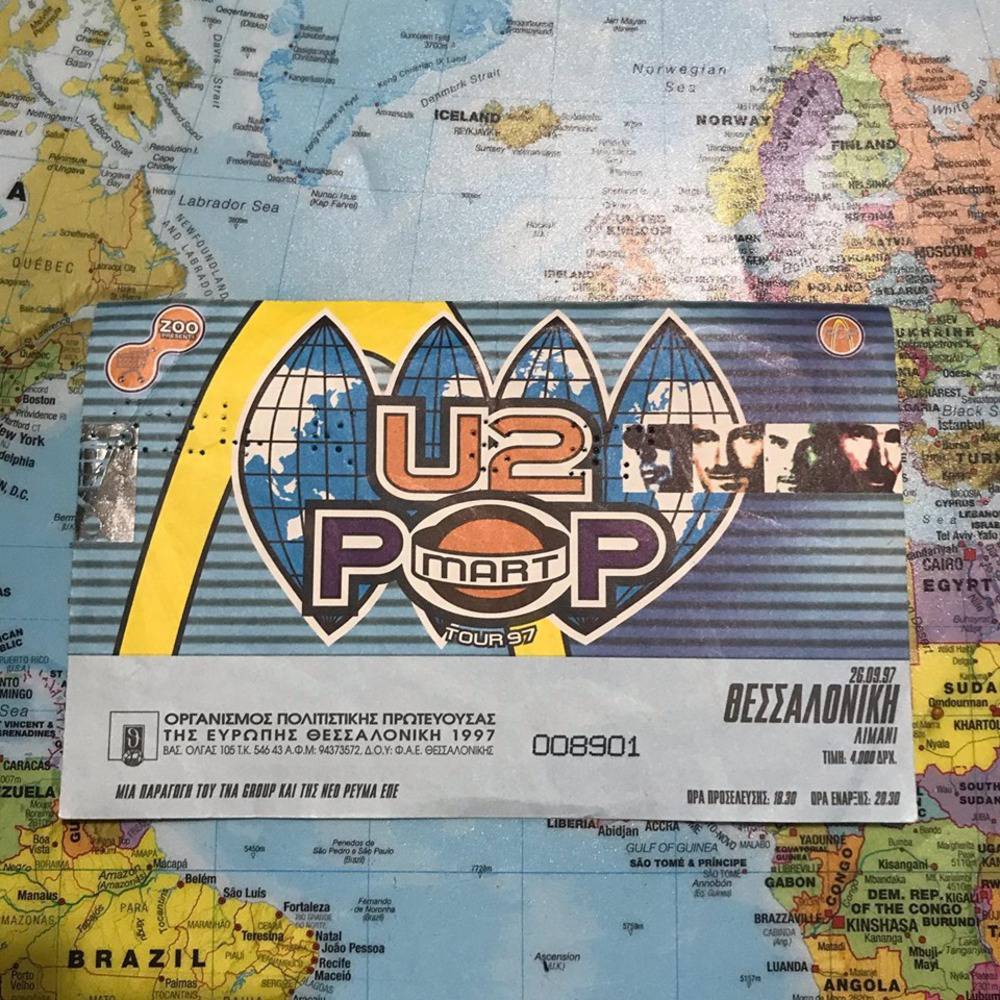 U2, Λιμάνι Θεσσαλονίκης. Ή αλλιώς όταν η ροκιά μετριέται σε νταλίκες. Μάλλον (βασικά σίγουρα) το “Pop” είναι το τρίτο καλύτερο άλμπουμ τους. Ας μείνουμε σε αυτό και ας ξεχάσουμε την μπλούζα six pack που φορούσε στο live ο Bono και τον Πορτοκάλογλου ως βασικό support (πριν είχαν βγει και οι Echo Tattoo).