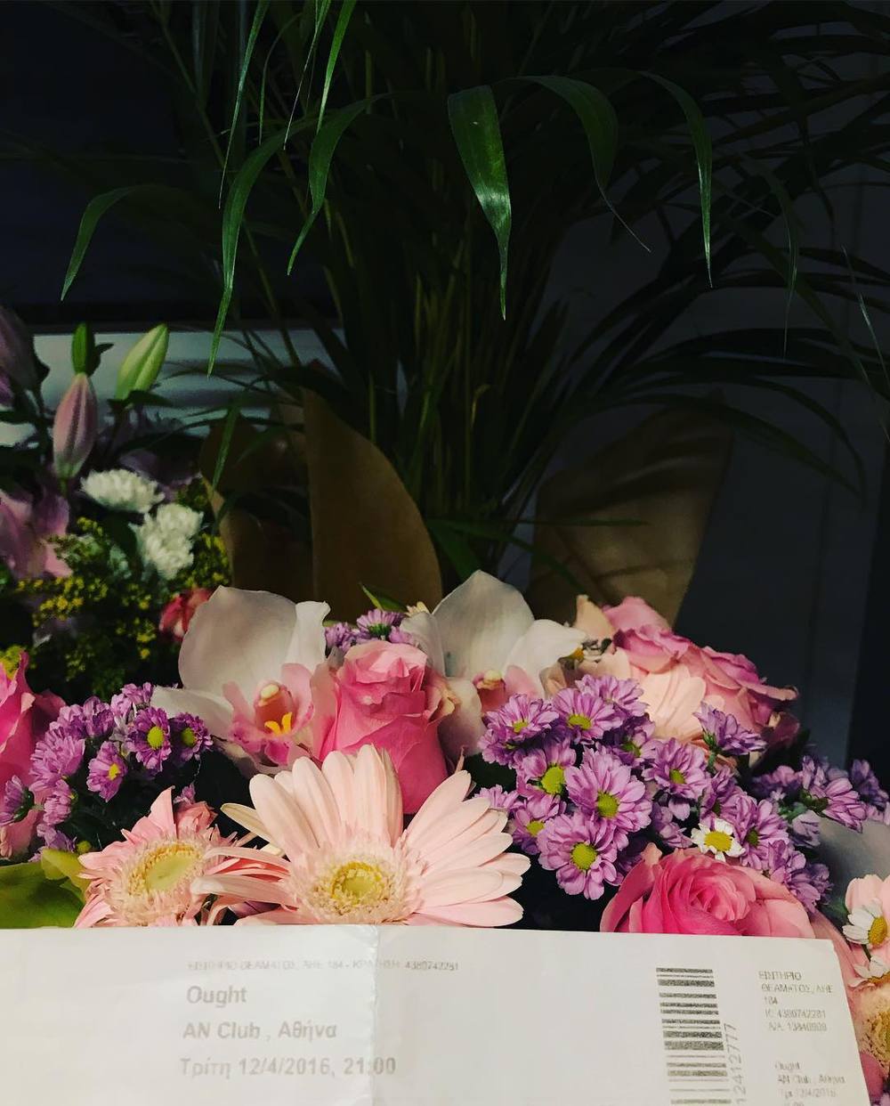 Η μαύρη ώρα της πρώτης φωτοτυπίας/εισιτήριο (τα μαζεύουμε και αυτά λοιπόν). Την βάλαμε (τη μαύρη ώρα) ανάμεσα στα άνθη να το σώσουμε. Mini Review: Οι Ought όταν δισκογραφούσαν στην Constellation ήταν σπουδαία μπάντα, οπότε και το live δεν μπορούσε να μην ήταν πολύ καλό.