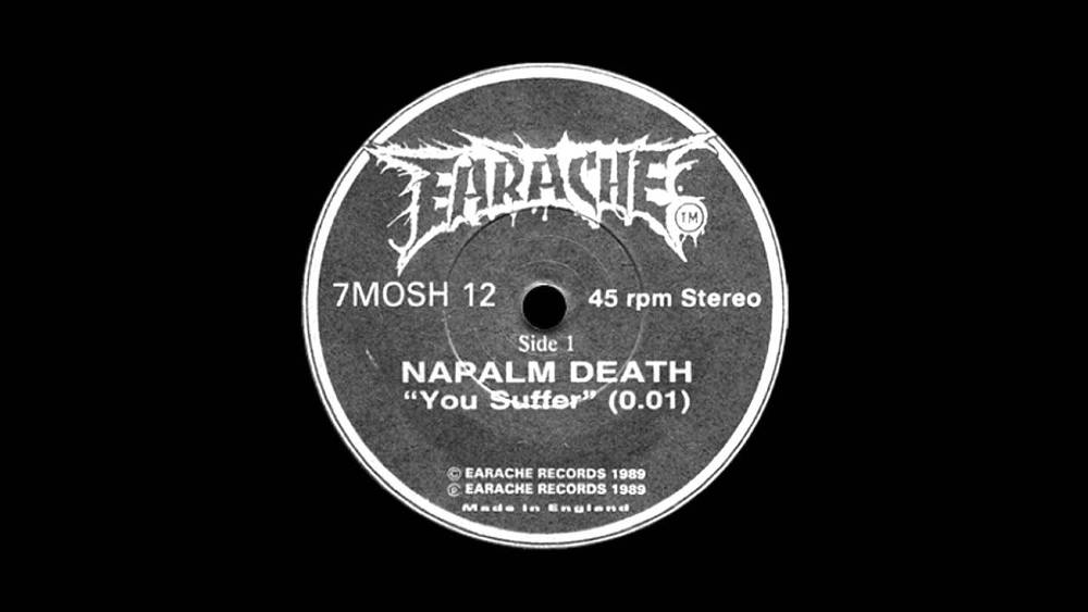 Πριν δυο τρεις εβδομάδες, καθόμουν και χάζευα μέχρι τα ξημερώματα, όπως συνήθως, μπροστά στην οθόνη του λάπτοπ μου, μέχρι που ξαφνικά μου δημιουργήθηκε η εξής απορία: Ποιό είναι το μικρότερο τραγούδι που έχει ηχογραφηθεί στον κόσμο; Γκούγκλαρα ακαρίαια και έλυσα μια από τις πιο περίεργες απορίες μου... Το μικροτέρο κομμάτι μέχρι σήμερα ανήκει στους Βρετανούς Napalm Death και έχει τίτλο "You Suffer" η διάρκεια του είναι μόλις 1,316 δευτερόλεπτα και κυκλοφόρησε το 1987 στο άλμπουμ "Scum". Ο Justin Broadrick τραγούδιστης της μπάντας εκείνη την περίοδο έχει δηλώσει σχετικά με το κομμάτι τα παρακάτω: