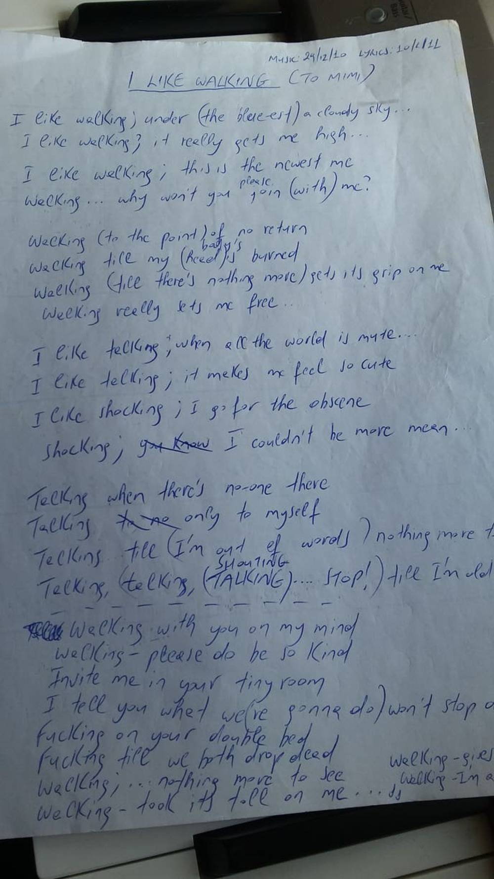 Το «I Like Walking» ήταν μοιραίο να γίνει single, φώναζε από μόνο του, ικέτευε να γίνει single κι εγώ ήμουν εκεί, το άρπαξα από τον αέρα και το κατέβασα. Όντως, περπατώντας. Μια 45λέπτη διαδρομή με τα ποδαράκια μου, το περπάτημα το συνιστώ ανεπιφύλακτα σε όλους, ανοίγει τον εγκέφαλο, βάζει ρυθμό και αν κάποιος έχει λίγο μουσικό μυαλό, γιατί εγώ έχω συνέχεια την μουσική στο κεφάλι μου, σου οργανώνει την σκέψη. Οπότε εγώ, καθώς περπατούσα σκέφτηκα doo-wop, 50's, αντρικές φωνές κλπ. και μου βγήκε όλο. Οι βασικοί στίχοι βγήκαν την ώρα που περπατούσα για ένα μάθημα (σ.σ. ο Νικόλας εργάζεται ως καθηγητής μουσικής). Μέτα γύρισα στο σπίτι, ευτυχώς την είχα την ιδέα στο κεφάλι μου και το έκανα αμέσως κομμάτι. Κάτι άλλο που βελτίωσα πολύ κατά την διάρκεια του δίσκου, είναι ότι τις ιδέες μου δεν τις άφηνα να φεύγουν. Νιώθω ότι έχω καταστρέψει πολλά κομμάτια αφήνοντας μια-δυο μέρες να περάσουν και μετά να μην θυμάμαι και αυτό για έναν συνθέτη είναι καταστροφικό. Ποτέ δεν ξαναέρχεται η ιδέα τόσο καλή όσο την πρώτη φορά. Πλέον έχω το κινητό ως μαγνητόφωνο και κάθομαι απλά και τραγουδάω τους στίχους ή τον ρυθμό. Το έκανα και τώρα, όπως ερχόμουν εδώ. Έκατσα λοιπόν στο σπίτι και το έγραψα, είδα ότι άρεσε σε κάποιο κόσμο, όταν τους το έπαιζα. Κατάλαβα ότι είναι catchy. Δεν ήμουν σίγουρος ότι αυτό θα είναι το single, άλλο το προόριζα για single, όταν έρθει η ώρα του θα σου πω. Τέλος επειδή ξέρω ότι είσαι fan των Kinks και της σκηνής αυτής γενικότερα, το «I Like Walking» είχε ξεκάθαρη επιρροή από τους Kinks, όλο το ρεφρέν είναι φόρος τιμής σε αυτόυς.