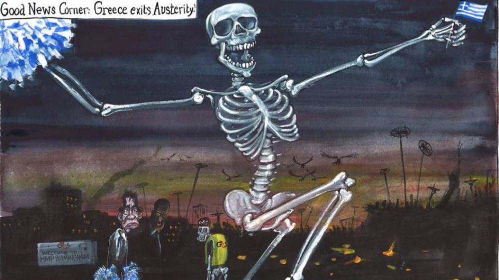 Πάει και ο Αύγουστος, πάει και ένα ακόμα Καλοκαίρι... Μαζί με το Καλοκαίρι έφυγαν και τα μνημόνια σε κλίμα διόλου πανηγυρικό, τουναντίον η έξοδος συνοδεύτηκε από πλήθος σκεπτικιστικών, απαισιόδοξων και επιφυλακτικών σχολίων. Ναι, είναι αλήθεια πως η απελευθέρωσή μας από τα μνημόνια δεν σημαίνει πως ξαφνικά... είμεθα πλούσιοι και μπορούμε να επιστρέψουμε στις προ κρίσης συνθήκες ζωής μας. Ούτε βέβαια σημαίνει πως θα σταματήσει κάθε είδους μέτρο λιτότητας. Από την άλλη, μοιάζει να είναι περισσότερο πια στο χέρι μας μία πορεία προς τη σωτηρία, μία πορεία προς την εξιλέωση. Αυτό το στο "χέρι μας" όμως δεν είναι μία απλή φρασούλα που χρησιμοποίησα για να περάσει η ώρα και για να βγει το κείμενο. Είναι η λέξη κλειδί για τη συνέχεια. Διότι αυτό το χέρι σε αυτήν τη χώρα έχει συνηθίσει να αρπάζει απ'όπου βρει, να ξοδεύει αλόγιστα, να απλώνει και να χτυπάει τον δίπλα (μεταφορικά ως επί το πλείστον, αλλά και κυριολεκτικά κάποιες φορές). Το ίδιο χέρι απ'την άλλη, κάποιες φορές εργάζεται σκληρά, δημιουργεί και προοδεύει, απλώνει για να δώσει και για να βοηθήσει συνανθρώπους. Ναι, είμαστε γενικά ένας αντιφατικός λαός, με πολλα κουσούρια και πολλά χαρίσματα, νομίζω όμως πως ήρθε ο καιρός να φροντίσουμε να βγάλουμε όλοι τον καλύτερο εαυτό μας, γιατί πολύ απλά αλλιώς δεν γίνεται. Μόνο έτσι η έξοδος από τα μνημόνια θα αποκτήσει νόημα και θα καταστεί σωτήρια. Ειδάλλως, αν δράσουμε με τα όσα κουσούρια σέρνουμε, δεν μας ξεπλένει τίποτα και πολύ φοβάμαι πως δεν θα έχουμε πολλές ακόμα ευκαιρίες. Ό,τι άφησαν πίσω τα μνημόνια δεν απέχει και πολύ από το σκίτσο που βλέπετε παραπάνω. Είναι του Martin Rowson και δημοσιεύτηκε στη Βρετανική Guardian στις 21 του Αυγούστου. Το πώς θα μας βρει ο χρόνος και η Ιστορία στο μέλλον εξαρτάται (και) από εμάς. Τον καθένα μας ξεχωριστά. Χρωστάμε στους εαυτούς μας να γίνουμε ο καλός μας εαυτός. Κάθε μέρα και κάθε ώρα...