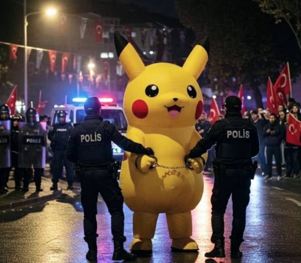 Αυτά, υποθέτω. Σας αφήνω με την παρακάτω φωτογραφία - ό,τι πιο σουρρεαλιστικό και κωμικοτραγικό είδαν τα ματάκια μου τον Μάρτιο του 2025. Οι φύλακες του -ξεκάθαρα, και αναμφίβολα πια- δικτάτορα Ερντογάν συλλαμβάνουν ένα Πικατσού.