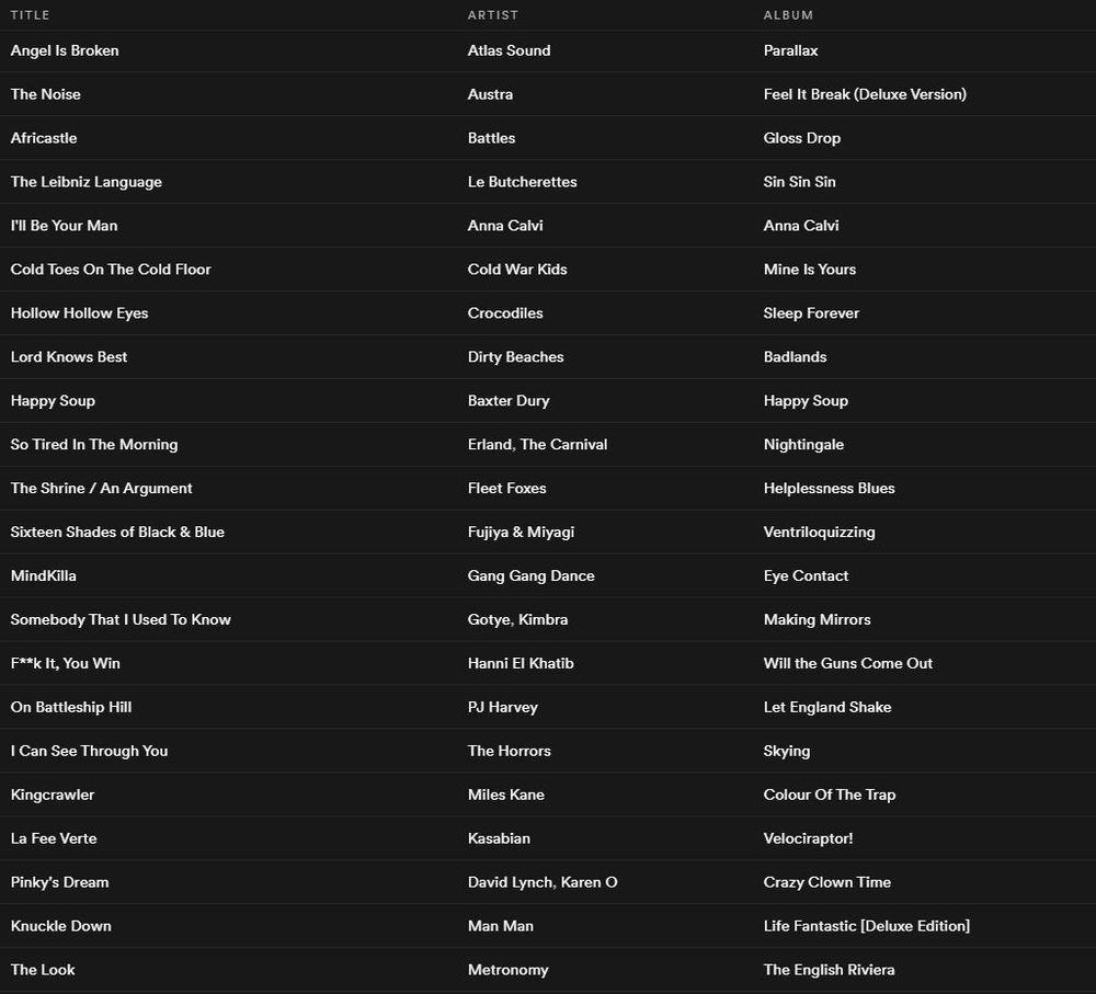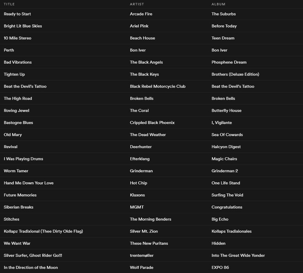 Σε αυτό το ποστ θα παρουσιάσω τους αγαπημένους μου 50 ξένους δίσκους από τα 10’s, μαζί με 200 διεθνούς σοδειάς τραγούδια που άκουσα κι έλιωσα όλα αυτά τα χρόνια. Η σειρά θα είναι χρονολογική. Συμπεριλαμβάνω μόνο ένα δίσκο από κάθε μπάντα ή δημιουργό (ομοίως και με τα τραγούδια), για λόγους αξιοπιστίας και ποικιλίας. Τα 200 τραγούδια σαν αριθμός μοιάζει τεράστιος, αλλά μου αρέσουν όλα αληθινά, δεν υπάρχει το παραμικρό τύπου filler. Και έχω κι έναν ακόμα φάκελο στο spotify, τον οποίο ονομάζω "subs" κι εκεί έχω άλλα 40 που δεν μου χώρεσαν. Μου ήρθε η ιδέα να τα φωτογραφίσω αντί να τα γράψω και είμαι πολύ χαρούμενος και ανακουφισμένος με αυτήν την ιδέα. Στο τέλος του άρθρο υπάρχει η λίστα στο spotify, σε χρονολογική σειρά και αλφαβητικά μέσα σε κάθε έτος.