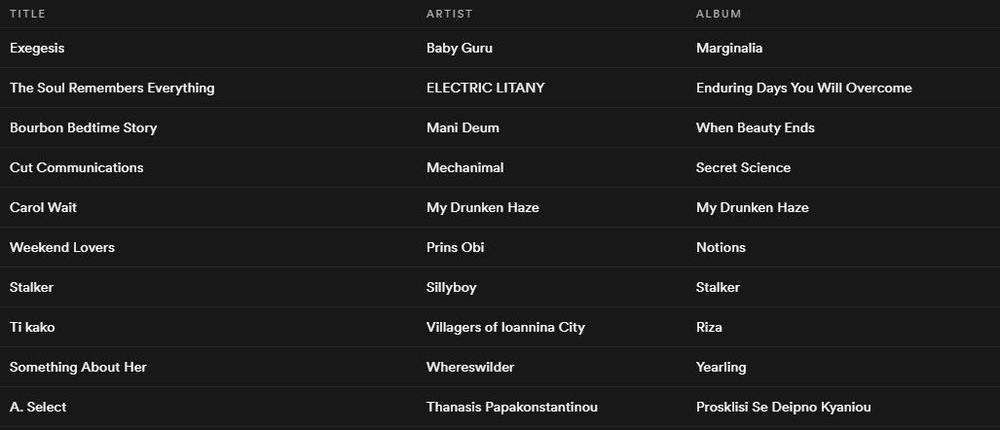 Στο παρόν-άρθρο λίστα καταγράφω τους 50 αγαπημένους μου δίσκους, μαζί με τα αγαπημένα μου 180 τραγούδια από τη δεκαετία που πέρασε. Να σημειωθεί πως τα άλμπουμς και τα κομμάτια παρουσιάζονται με χρονολογική σειρά και πως, όπως το συνηθίζω, στις λίστες συμπεριλαμβάνονται μονάχα ένας δίσκος/τραγούδι από κάθε συγκρότημα και δημιουργό, για λόγους ποικιλίας και αξιοπιστίας. Φωτογράφισα τα κομμάτια από το spotify, κάτι που με γλίτωσε από πολύ πολύ κόπο :). Όσα, όμως, δεν ήταν διαθέσιμα καταγράφονται μετά τις αντίστοιχες φωτογραφίες κάθε έτους. Είναι όλα προσεκτικά επιλεγμένα και πολύ αγαπημένα, δεν υπάρχουν fillers. Νομίζω πως σίγουρα κάποια έχω ξεχάσει και όταν το ανακαλύψω σε λίγες (ή πολλές) μέρες, θα βρίζω και θα αρχίσω τα updates (αυτό που διαβάζεις είναι το πρώτο - 7/3/20). Θα παρατηρήσεις πως οι καταχωρήσεις από το δεύτερο μισό της δεκαετίας είναι πολύ περισσότερες σε σχέση με το πρώτο, πάει να πει πως στο δεύτερο μισό των 10's συντελέσθη η έκρηξη που στο πρώτο επωαζόταν ή πως -πολύ πιθανόν- λόγω του ότι εγώ άρχισα το βαθύ κι εμμονικό digging από το 13-14 κι έπειτα, οι επιλογές μου είναι κυρίως από τη δεύτερη πενταετία.