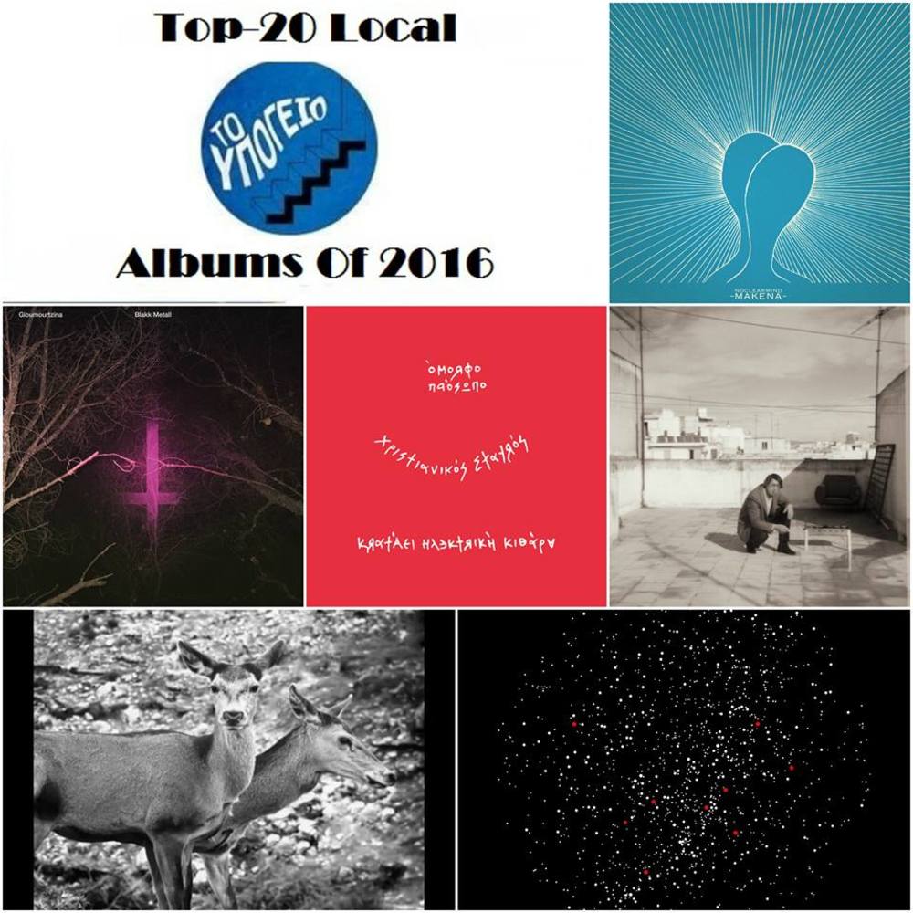 Με σχετική καθυστέρηση λόγω νεοεμφανισθέντων και δυσβάσταχτων επαγγελματικών ανατροπών, σας παρουσιάζω τη λίστα με τα 20 καλύτερα εγχώρια albums του 2016. Μαζί και 3 καταπληκτικά EPs. Η κατηγορία "Η Απογοήτευση Της Χρονιάς" κόπηκε, διότι πέρσι μάλωσα με δυο φίλους μου εξαιτίας της σχετικής επιλογής μου... Δεν έχω λόγια να περιγράψω το πόσο γουστάρω την ελληνική σκηνή τα τελευταία χρόνια, κάθε μήνα σχεδόν ξεπηδούν δισκάρες από κάθε γωνιά της χώρας, κάθε είδους και κάθε τεχνοτροπίας, από 20χρονους μουσικούς δαίμονες που μας συστήνονται με γδούπο και στιλ, ως και από πιο ώριμους και ήδη γνωστούς μουσικούς που συνεχίζουν και τελειοποιούν το έργο τους. Είμαι περήφανος και ευτυχισμένος για τις μουσικές που παράγει η Ελλαδίτσα μας και έχω την αίσθηση πως αυτή η...υπερπαραγωγή δίσκαρων θα συνεχιστεί για πολλά χρόνια. Αυτά. Εδώ τα 20 άλμπουμς της χρονιάς, 20 και νιώθω πως αδίκησα αρκετά άλλα πολύ καλά δισκάκια που μου έκαναν ξεχωριστή παρέα τη χρονιά που πέρασε... Αλλά το προανάφερα, βγαίνουν πολλά! :) Και κάπως έτσι λοιπόν κλείνει η μουσική ανασκόπηση του Υπογείου για το 2016, είχαν προηγηθεί τα 50 Καλύτερα Διεθνή και τα καλύτερα 40 Καλύτερα Εγχώρια τραγούδια, καθώς και τα 20 καλύτερα διεθνή albums.