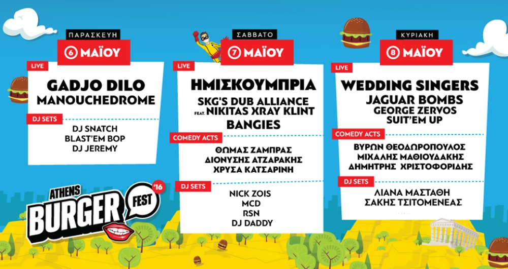 Κι ενώ εγώ παλεύω με διατροφές, χοληστερίνες και τριγλυκερίδια, διοργανώνεται στην Αθήνα το πρώτο Burger Fest... Το καλύτερο ίσως έδεσμα σε αυτή τη ζωή (μετά το σουβλάκι) αποκτά το δικό του φεστιβάλ! Δεν σ'αφήνουν ν'αγιάσεις σε αυτόν τον τόπο, είναι ξεκάθαρο αυτό και το χω ξαναπεί. Στις 6, 7 και 8 Μαϊου κατεβείτε στο Γκάζι, στο παλιό Αμαξοστάσιο του ΟΣΥ και γευτείτε τα καλύτερα burgers φτιαγμένα από τα καλύτερα burger houses της πόλης (και όχι μόνο). Οι βραδιές πέρα από μάσα θα περιλαμβάνουν γέλιο (εξαίρετοι stand-up comedians θα είναι εκεί, με τον υπέρτατο προσωπικό μου αγαπημένο Διονύση Ατζαράκη να ξεχωρίζει) και φυσικά άπειρη μουσική! Gadjo Dillo, Ημισκούμπρια, Νικήτας Κλιντ και Wedding Singers και πολλά άλλα άκρως ενδιαφέροντα ονόματα θα παίξουν live και θα συνοδεύσουν την κτηνωδία... :) Κι ύστερα DJ sets, να χορέψουμε για να χωνέψουμε. Off we go για burger fest λοιπόν και οι εξετάσεις αίματος ας περιμένουν (για ακόμα μια φορά)... Ακολουθεί αναλυτικά το δελτίο τύπου, καθώς και το (απολαυστικό) trailer του event.