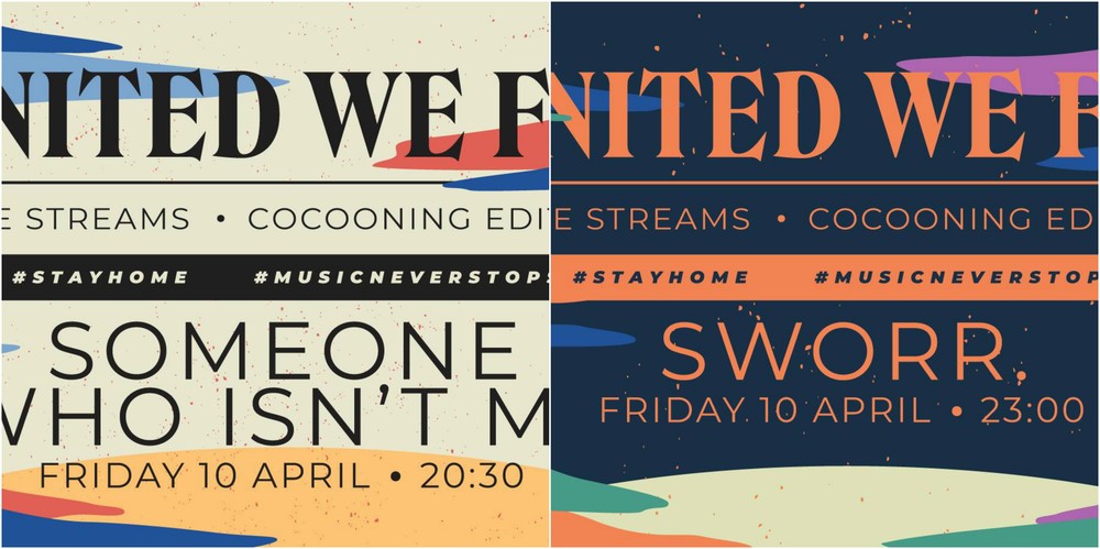 Η τρίτη εβδομάδα των Stay Home Sessions της United We Fly ξεκίνησε από χθες με τους εξαιρετικούς Xoan και σειρά σήμερα 10 Απριλίου παίρνουν πρώτα οι αγαπημένες Someone Who Isn't Me (20.30 μ.μ.), ενώ 2μιση ώρες αργότερα, στις 23.00, έρχονται με φόρα από τη Χαλκίδα οι Sworr, οι οποίοι σε ένα DJ set θα μας παρουσιάσουν τα αγαπημένα τους κομμάτια.