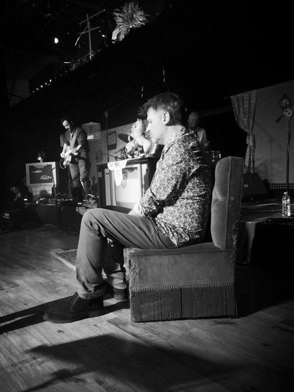 Καταλυτικό ρόλο σε όσα θα γράψω για το live του Φοίβου νομίζω θα παίξει η τοποθέτησή μου στο χώρο του Passport, το 14άρι τραπέζι μας βρισκόταν πολύ κοντά στη σκηνή, πλαγίως και δεξιά, σχεδόν στην ίδια ευθεία με το πάλκο, έβλεπα τα τεκταινόμενα σαν κάπως απ'έξω, με αποτέλεσμα να νιώσω για πρώτη φορά σε παράσταση του Φοίβου περισσότερο σαν αντικειμενικός παρατηρητής, παρά σαν -ως είθισται- ορκισμένος φαν (ως και...Φοιβίτσα). Όσο περιμέναμε τον Δεληβοριά και την μπάντα του, χάζευα και παρατηρούσα τα σκηνικά, που προφανή σκοπό είχαν να μεταφέρουν το πατρικό του Φοίβου στην Καλλιθέα στο νέο Passport του Κεραμεικού: Καταπληκτικά με μία λέξη, τα εύσημα στους Θάνο Κοσμίδη και Αγγελική Μπόζου. Σεμεδάκια, κλουβιά με καναρίνια, η διάσημη πια TV του cover του νέου δίσκου, τηλέφωνο χωρίς πλήκτρα ('δεν σ'ακούω, πάρε λίγο το μηδέν') ταράτσες με μπουγάδα και κεραίες κι ακόμα πιο πάνω ο ουρανός με το φεγγάρι και τ'αστέρια...