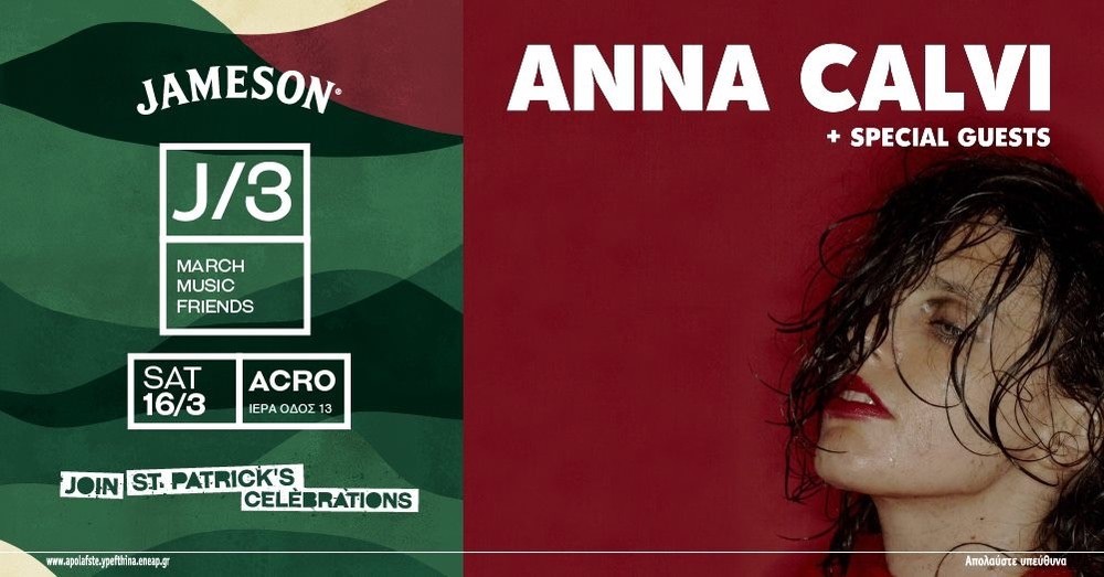 Το Jameson Irish Whiskey εγκαινιάζει τα J3 live sessions και προσκαλεί την Anna Calvi για πρώτη φορά ζωντανά στην Ελλάδα! Το Σάββατο 16 Μαρτίου, η κορυφαία Βρεταννίδα δημιουργός θα δώσει την πρώτη συναυλία της στη χώρα μας, σε ένα ειδικό event με περιορισμένο αριθμό θεατών.