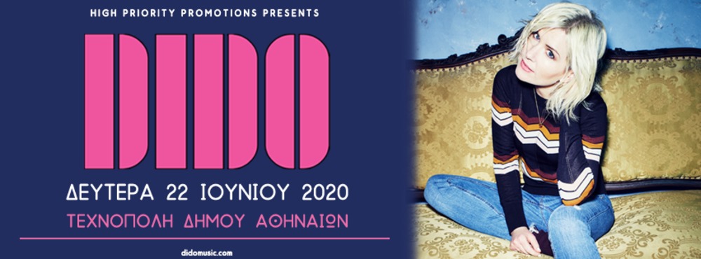 Η High Priority Promotions έχει πάρει φωτιά και μετά την φοβερή ανακοίνωση ότι θα φέρουν την ίδια μέρα τους The National και τους Idles, σήμερα συνεχίζουν. Πριν λίγο ανακοίνωσαν ότι στις 22/6 θα έχουμε την ευκαιρία να απολαύσουμε για πρώτη φορά στην χώρα την Dido. H συναυλία θα γίνει στην Τεχνόπολη στο Γκάζι.