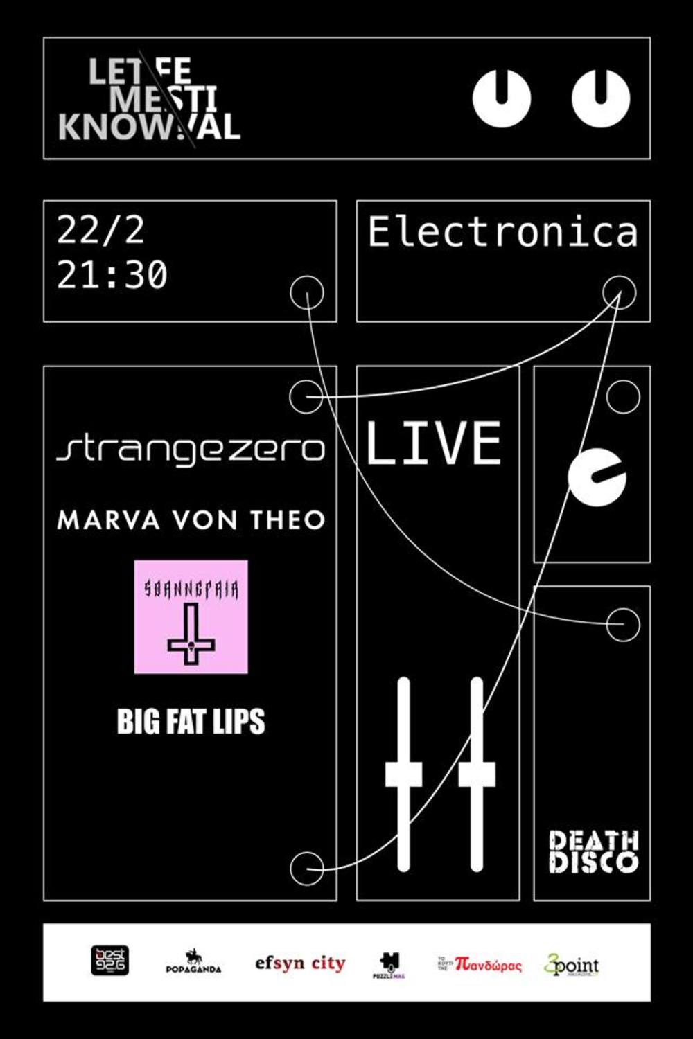 Πριν ένα μήνα σας ενημερώσαμε για την δεύτερη μέρα του Let Me Know Festival. Σιγά σιγά φαίνεται ότι οι μηχανές του εν λόγω εγχειρήματος παίρνουν μπροστά καθώς αύριο έχουμε στο Death Disco για πρώτη φορά την ηλεκτρονίζουσα πλευρά του φεστιβάλ. Έτσι λοιπόν αύριο έχουμε την ευκαρία να ακούσουμε τους Strange Zero που μόνο απαρατήρητοι δεν περνάνε, τους εκπληκτικούς Marva Von Theo οι οποίοι έχουν στις βαλίτσες τους το πολύ καλό ντεμπούτο άλμπουμ τους "Dream Within A Dream". Επίσης στην σκηνή θα βρεθεί η πολλά υποσχόμενη SOaNNEFaiR ενώ την βραδιά θα ανοίξει ο αγαπητός και πολυσχιδής Big Fat Lips. Be there mates...