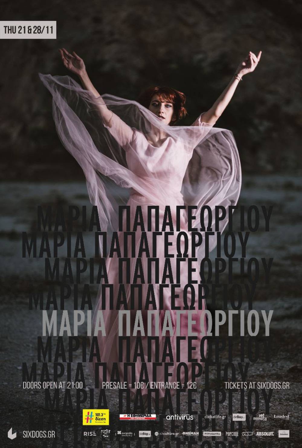 Η Μαρία Παπαγεωργίου επιστρέφει αυτόν το Νοέμβριο στον χώρο που έχει αγαπήσει την ανεξάρτητη εναλλακτική μουσική σκηνή της χώρας. Η πρώτη της εμφάνιση πέρυσι, ακριβώς πριν ένα χρόνο, αγκαλιάστηκε από το κοινό του six d.o.g.s και έγινε sold out. Φέτος, σε 2 διαδοχικά live, στις 21 και στις 28 Νοεμβρίου θα παρουσιάσει μία παράσταση διαφορετική, με ένα σχήμα επίσης νέο ή όπως λέει η ίδια «ένα σχήμα που αποτελείται από μία ανασύσταση των ήδη υπαρχόντων».