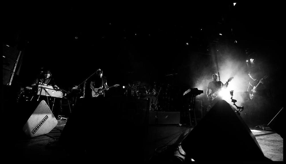 Η συνέχεια ανήκε στους τεφλόν. Εδώ τα θέματα με την ένταση της φωνής ήταν ακόμα πιο εμφανή, με δυσκολία ακούγαμε τα λόγια του Κώστα. Και αυτό ήταν κρίμα, γιατί -όπως ανάφερα και στον πρόλογο- οι στίχοι είναι από τα πιο... θανατηφόρα όπλα του σχήματος. Όχι ότι η μουσική τους πάει πίσω, και αυτή ήταν που μας πήρε και μας σήκωσε στα ταβάνια του Gagarin για τα επόμενα 45 λεπτά. Στο "Ακρογιάλι" (το οποίο είχα "παραγγείλει" μέσω ενός σχολίου μου στο facebook - ίσως το... comment μου εισακούστηκε :) ) είχα μείνει σύξυλος και εμβρόντητος, κατάφεραν τα αλάνια να το αποδώσουν σχεδόν όπως στο δίσκο, παράγοντας όλους αυτούς τους μαγικούς ήχους, αυτούς που με στέλνουν σε έναν απροσδιόριστο χωροχρόνο και μ'αφήνουν εκεί, στο πουθενά, να αιωρούμαι εξαγνισμένος για σχεδόν 10 λεπτά, όσα και η διάρκεια αυτού του υπέροχου κομματιού. Αυτό (μου) συνέβη και στην αρένα του Gagarin... Όλο το set όμως ήταν απολαυστικό, βασισμένο στους δύο δίσκους ("τεφλόν"/2014, "κομμάτια από τα ερείπια"/2017) του κατά βάση post rock Αθηναϊκου σχήματος.