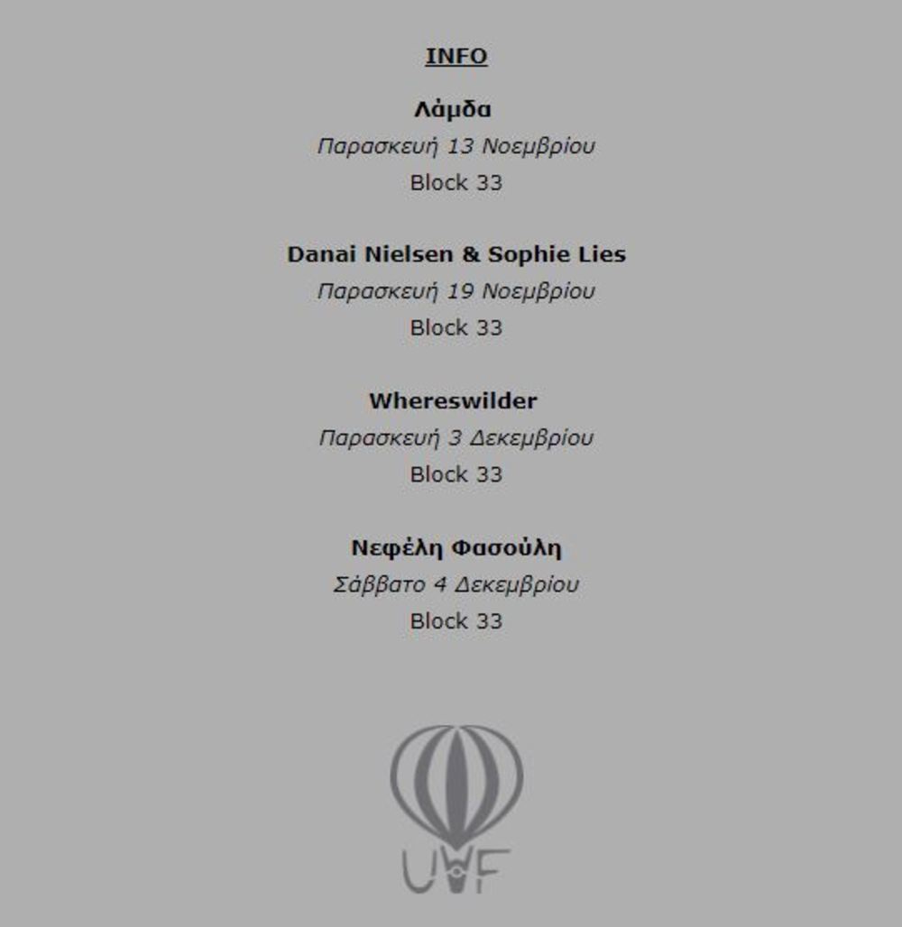 Οι ιδιαίτεροι Λάμδα, οι ταλαντούχες Sophie Lies & Danai Nielsen, οι υποδειγματικοί Whereswilder και η χαρισματική Νεφέλη Φασούλη, έρχονται στο Block 33 σε νέες ημερομηνίες.