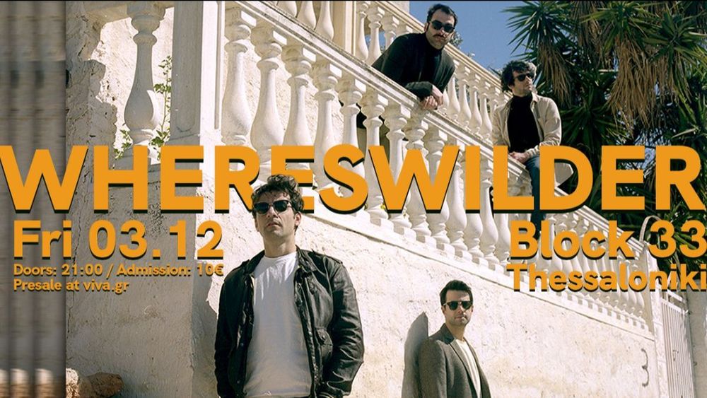 Στις 3 Δεκεμβρίου, στην σκηνή του Block 33, ανεβαίνουν, οι Whereswilder – η τετραμελής μπάντα από την Αθήνα - με νεοψυχεδελικούς ήχους, νέα τραγούδια από το τρίτο αλμπουμ τους και αγαπημένα παλαιότερα κομμάτια.