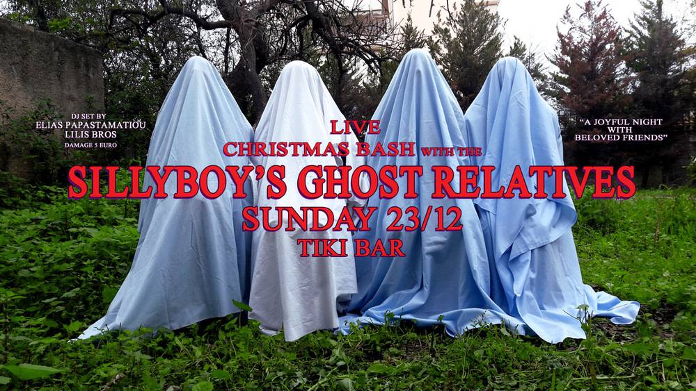 O Sillyboy και οι... Φαντασματένιοι του Συγγενείς θα γιορτάσουν το κλείσιμο τούτης της υπεργεμάτης και δημιουργικότατης χρονιάς με ένα Χριστουγεννιάτικο party με μουσικούς και όχι μόνο φίλους, την Κυριακή 23 Δεκεμβρίου στο Tiki Bar (Φαλήρου 15) και όλα δείχνουν οτι μας περιμένουν πανέμορφες εκπλήξεις...