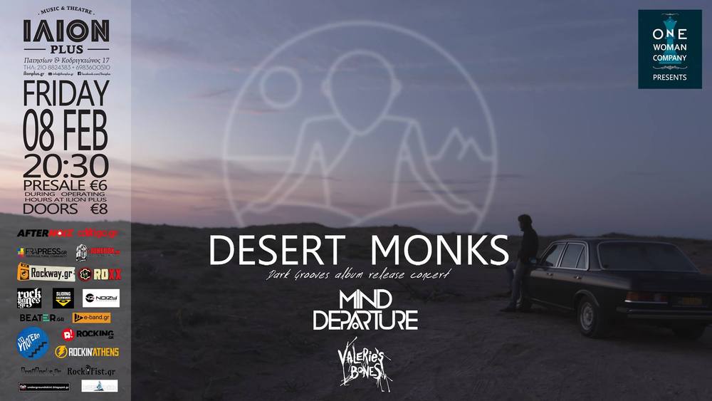 Οι Desert Monks, η πολλά υποσχόμενη Alternative rock παρέα από την Αθήνα, θα βρεθούν στο ILION PLUS, την Παρασκευή 08 Φεβρουαρίου 2019, για να μας παρουσιάσουν το debut album τους Dark Grooves (out 18/12 - check album review here) και για να μας οδηγήσουν στα αγαπημένα τους στέκια της πόλης.