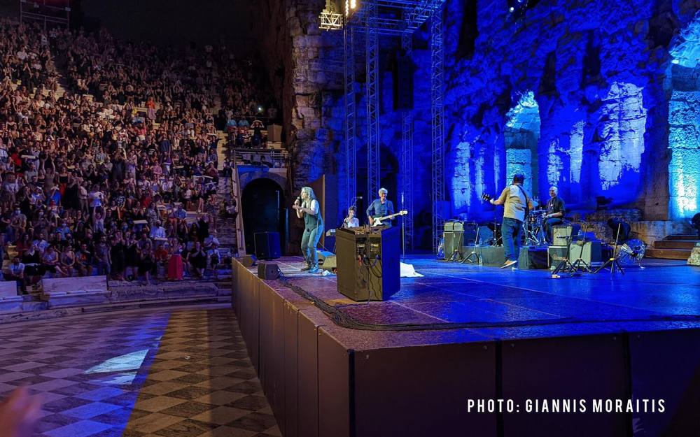 Ερμηνεύτηκαν όμορφα κομμάτια αλλά και covers (θα δείτε την λίστα παρακάτω), φυσικά το mega hit όλων των γενεών “Because the Night”, φτιαχτήκαμε για τα καλά αλλά συγχρόνως βλέπαμε τα συννεφάκια να κάνουν “παιχνιδάκια” και τις αστραπές να φωτίζουν κι άλλο το χώρο και καταλάβαμε πως ό,τι προλάβουμε, γιατί άρχισε το ψιλόβροχο! Damn! Το encore, όπως και αναμενόταν, ήταν το “People Ηave the Power”, όπου όλο το Ηρώδειο τραγουδούσε ενθουσιασμένο παρά τη βροχή! Και κάπως έτσι έληξε η όμορφη αυτή μουσική συνεύρεσή μας με τη Patti. Μας χαιρέτησε, μας φίλησε, μας ευχαρίστησε, τραβήχτηκε η καθιερωμένη selfie της μπάντας με φόντο το κοινό και την Ακρόπολη κι εμείς φύγαμε πλήρεις!