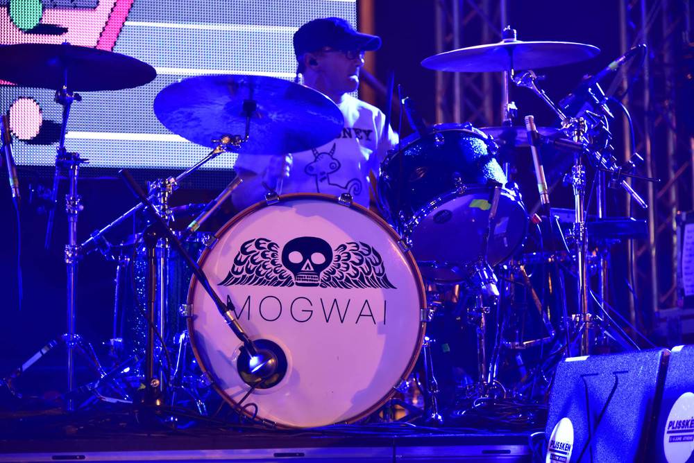 Επικοί, καθηλωτικοί, απόκοσμοι. Βρέθηκα στο τελείως πίσω σημείο του χώρου του φεστιβάλ, πιστεύοντας πως δεν θα αντέξω τον ήχο που ερχόταν από τη σκηνή τη στιγμή που οι Σκωτσέζοι ξεκινούσαν το σετ τους. Τελικά, έκανα το σωστό. Δεκάλεπτα performance σε κομμάτια που μόνο σε ζωντανή εκτέλεση καταλαβαίνεις γιατί τους καθιέρωσαν εδώ και 20 σχεδόν χρόνια ως ένα από τα μεγαλύτερα ονόματα, αν όχι το κορυφαίο, στην post rock. Τα drums του Martin Bulloch σε στιγμές νόμιζα οτι μοιάζουν με πολυβόλο που ρίχνει προς το μέρος μας, κρυμμένο ακριβώς πίσω από τον κόσμο. Οι υψηλές εντάσεις δεν έκαναν κακό στο τελικό αποτέλεσμα, αντιθέτως. Έστελναν ένα διαρκές ατμοσφαιρικό ωστικό κύμα από synthesizer που ίσως επίτηδες να ρυθμίστηκαν έτσι ώστε να μας πετάξει στον “τοίχο” ανήμπορούς να αντιδράσουμε. Τα δύο ροζ μάτια, κρεμασμένα ψηλά δεξιά και αριστερά στη σκηνή, ήταν τοποθετημένα εκεί για τους Mogwai. Δεν μπορώ να θυμηθώ αν τοποθετήθηκαν από την Παρασκευή, αλλά θυμάμαι πως αμέσως κατάλαβα ότι πρόκειται για το σύμβολο του εξωφύλλου του περυσινού τους άλμπουμ “Rave Tapes”. Άναβαν και έσβηναν τις στιγμές τις κορύφωσης μέσα στα κομμάτια του live, που όπως προαναφέραμε είχαν τόσο βασανιστικές βαθμιαίες εισαγωγές για να σε προετοιμάσουν για το ηχητικό ξέσπασμα που σε λίγο θα παρέσερνε τους πάντες. Μια αληθινή εμπειρία η εμφάνιση τους, θα τη θυμόμαστε.