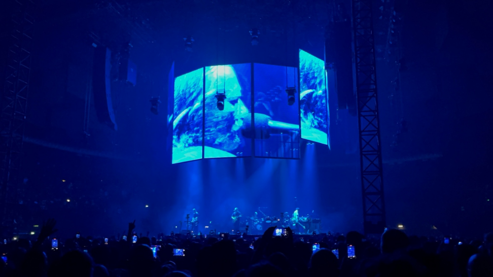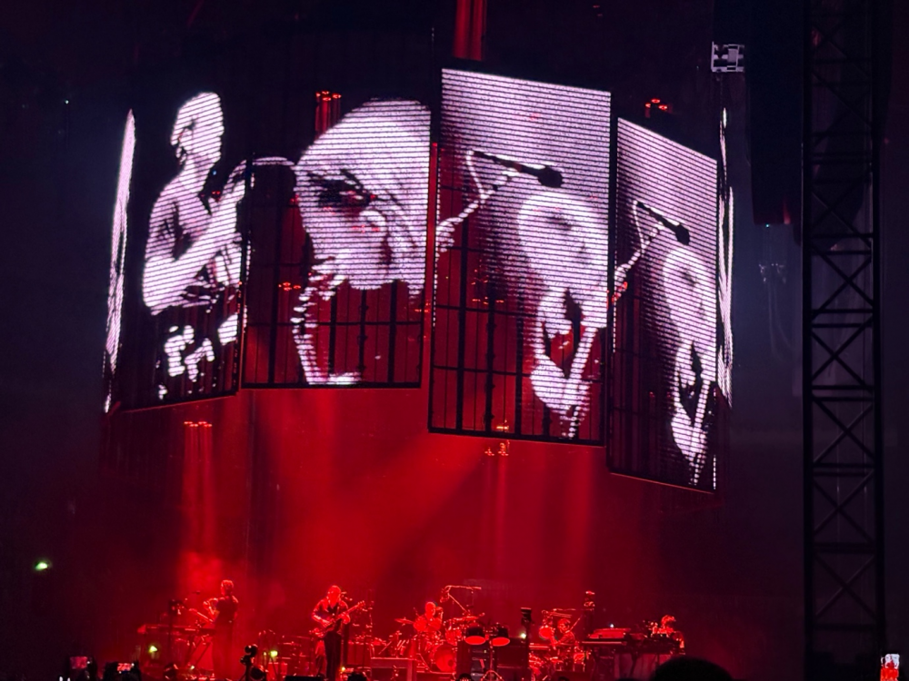 Μπαίνουμε μέσα και η μαγεία μας χτυπάει αμέσως κατακέφαλα και μας κόβει την ανάσα, για την ακρίβεια “we ‘re paying attention”: μια κυκλική υπερυψωμένη σκηνή στη μέση της αρένας, περίκλειστη, με οθόνες πάνω στις οποίες προβαλλόταν αυτό που συνέβαινε πάνω σε αυτή και οι οποίες ήταν ταυτόχρονα διάφανες και σου επέτρεπαν να βλέπεις από μέσα. Μετά από λίγο, οι οθόνες ανήλθαν και αιωρούνταν μέχρι το τέλος της συναυλίας σε ανισοϋψείς θέσεις, αλλά εξακολουθούσαν να δείχνουν τι συνέβαινε πάνω στη σκηνή, και πλέον μπορούσαμε απρόσκοπτα να δούμε τους 5 Radiohead επάνω σε αυτή να δίνουν τον καλύτερό τους εαυτό με το ξεκίνημα και να δείχνουν τις διαθέσεις τους νωρίς νωρίς! O Thom Yorke σε μεγάλα κέφια, να τραγουδάει, να παίζει κιθάρα, να παίζει πιάνο, να παίζει πλήκτρα και να χορεύει με όλο του το είναι και να ερμηνεύει με όλο του το σώμα και τις εκφράσεις του προσώπου του. Με μια λέξη: μαγικός. Ο Johhny Greenwood ίδιος κι απαράλλαχτος με 25 χρόνια πριν να παραδίδει masterclass μουσικής, πολυοργανικής performance, Colin Greenwood στο μπάσο, Ed O’Brien στην κιθάρα, Phil Selway στα τύμπανα, αψεγάδιαστοι κι αυτοί, ενώ οι οθόνες δεν προβάλλουν απλά τι συμβαίνει πάνω στη σκηνή, αλλά αποτελούν ένα live visual installation που αντανακλά εν είδει παραμορφωτικού «μιξαρίσματος» του τι κάνει ο κάθε ένας από τους μουσικούς πάνω στη σκηνή, καθιστώντας τον visual artist που επιμελείται το όλο project αναπόσπαστο μέλος της live μπάντας. Ο κόσμος παίρνει φωτιά.