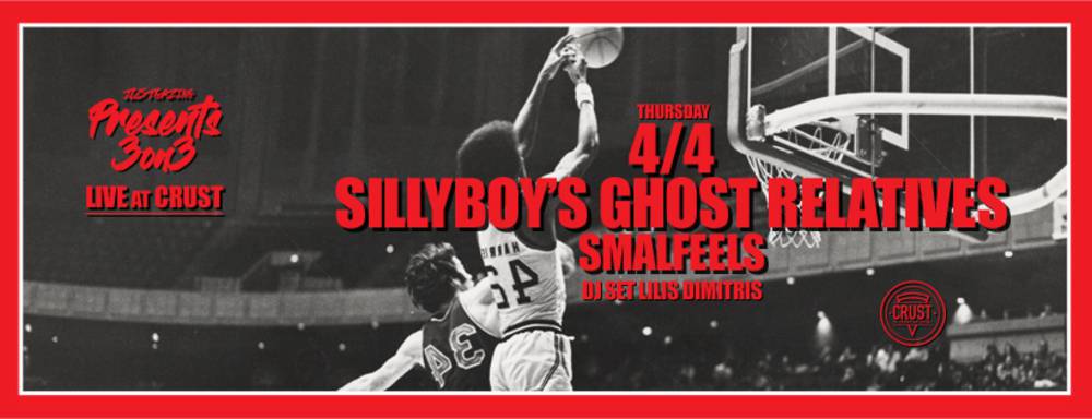 Οι Sillyboy's Ghost Relatives έχοντας μόλις κυκλοφορήσει το νέο single "In A Small Place" που φέρει τις ευλογίες του Majestic Casual playlist και θα είναι διαθέσιμο σε δωδεκάιντσο βινύλιο για λογαριασμό του Βρετανικού label Claremont 56, επιμελούνται την πρώτη από τις τρείς 3 on 3 Πέμπτες της Just Gazing στο υπόγειο της πιτσαρίας Crust.