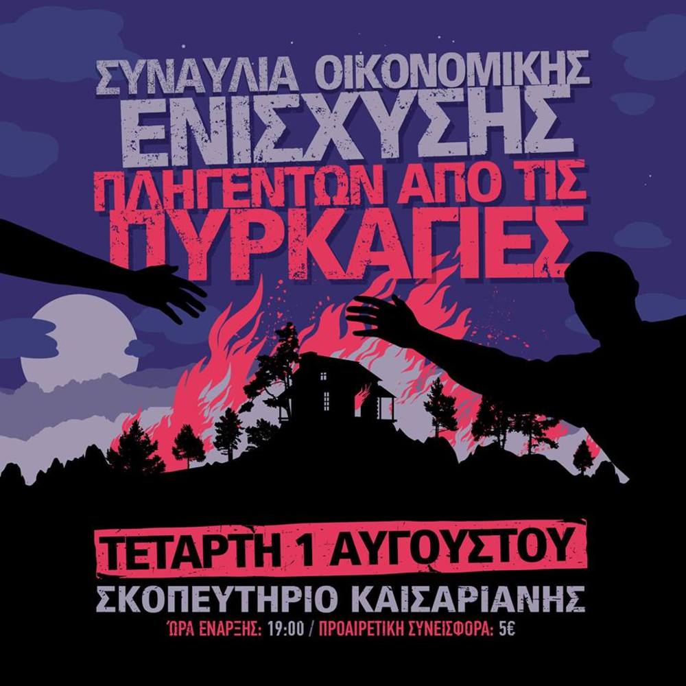 Την Τετάρτη 1η Αυγούστου, στον ιστορικό χώρο του Σκοπευτηρίου Καισαριανής, συγκεντρώνουμε πόρους που θα διατεθούν ΑΠΕΥΘΕΙΑΣ στους πληγέντες (χωρίς τη διαμεσολάβηση κρατικών φορέων και μηχανισμών), διαδικασία της οποίας την διαφάνεια θα πιστοποιήσει νομικός.