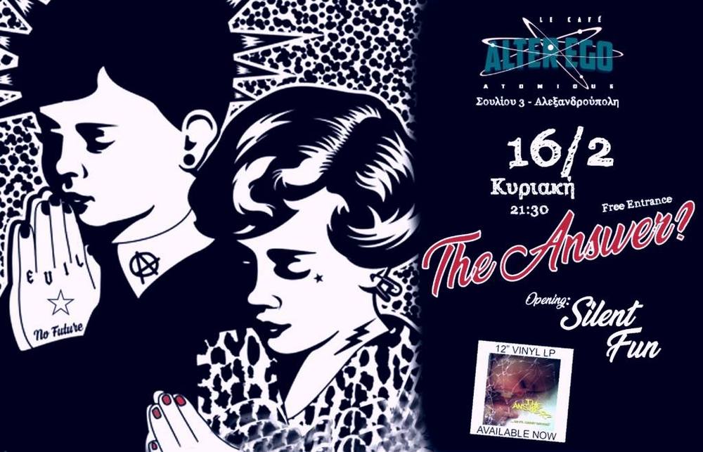 Έχοντας συμπληρωθεί ένας χρόνος από την κυκλοφορία των THE ANSWER? με το άλμπουμ "...And It's Already Tomorrow" και ανοίγοντας τη περσινή χρονιά λάιβ μεγάλων συγκροτημάτων όπως Λευκή Συμφωνία, Bad Movies, Vodka Juniors, Χατ Τρικ ήρθε η στιγμή, πριν το λάιβ του Μαρτίου με τους θρυλικούς Nightstalker, να τους απολαύσουμε ζωντανά στη καθιερωμένη τους εμφάνιση τέτοια εποχή τα τελευταία τρία χρόνια στο Alter Ego, μετατρέποντας τη βραδιά τις Κυριακής σε πανκ ροκ πάρτι!