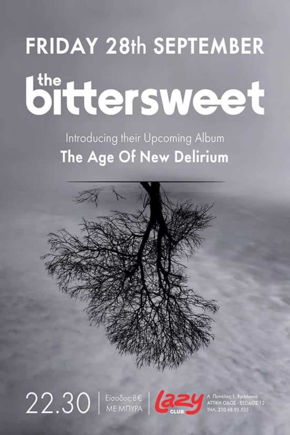 Ο αγαπημένος μας Νικόλας Αλαβάνος και οι The BitterSweet όπου να ναι μας δίνουν το 2ο πολυαναμενόμενο LP τους "The Age Of New Delirium", έξι ολόκληρα χρόνια έπειτα από το επιτυχημένο ντεμπούτο τους, "Dancing In The Zoo" και εν όψει της επικείμενης εν λόγω κυκλοφορίας, αλλά και το πρώτου single που αναμένουμε μέσα στις επόμενες μέρες, θα ανέβουν στη σκηνή του Lazy Club (Λεωφόρος Πεντέλης 1, Βριλήσσια) την ερχόμενη Παρασκευή 28 Σεπτεμβρίου.