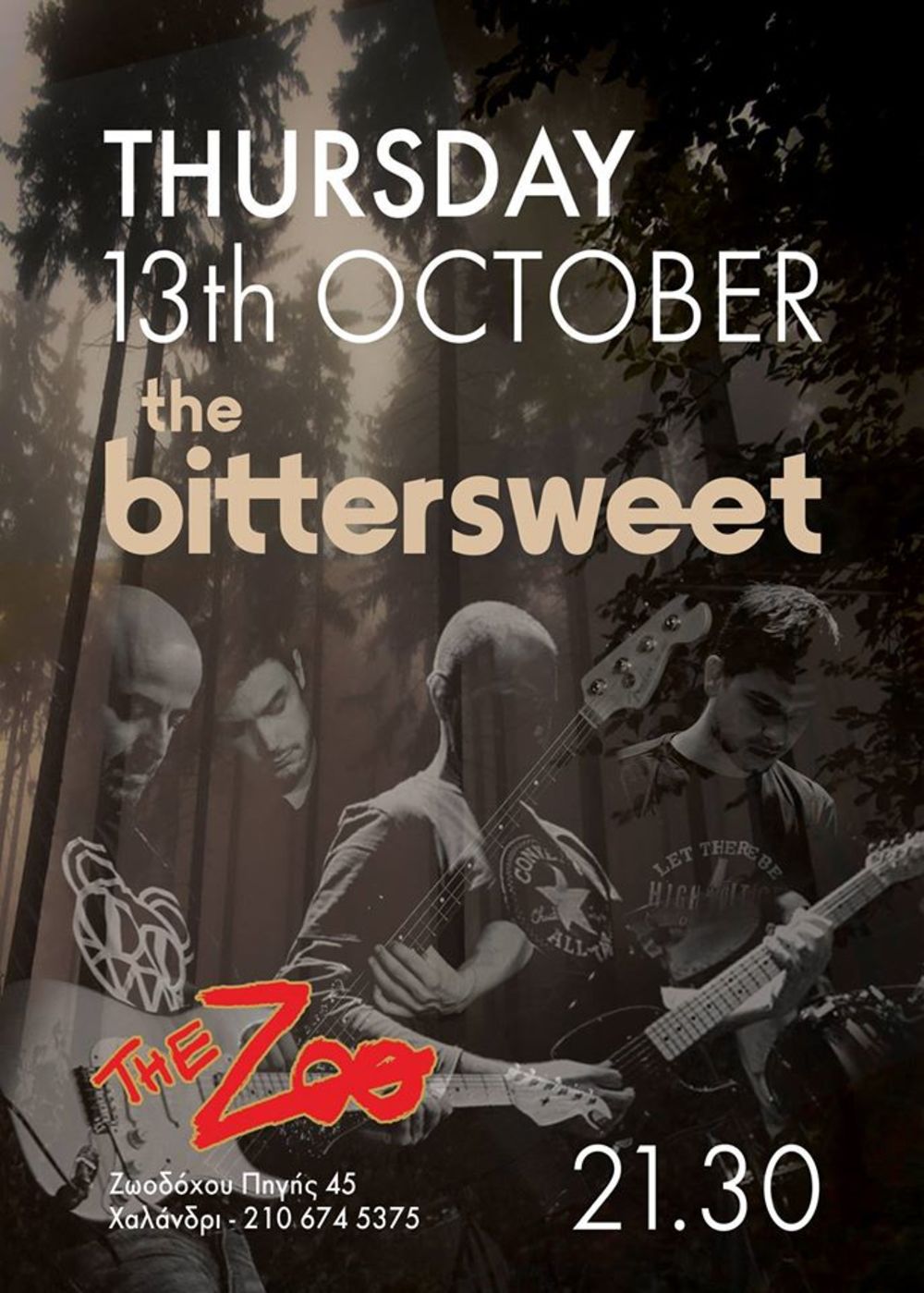 Πρώτο μεγάλο live της σεζόν για τους The BitterSweet,,, Aνεβαίνοντας στην πλήρως ανακαινισμένη σκηνή του αγαπημένου The Zoo στο Χαλάνδρι παρουσιάζουν ένα ποτ πουρί από παλιά αγαπημένα, διασκευές και κομμάτια απ'το νέο lp, όπως και έναν νέο drummer! Το πρώτο live μετά το 2009 χωρίς τον Δημήτρη Ρίγκο δυστυχώς...Στη θέση του προσωρινώς ο Πάνος Τζινιόλης.