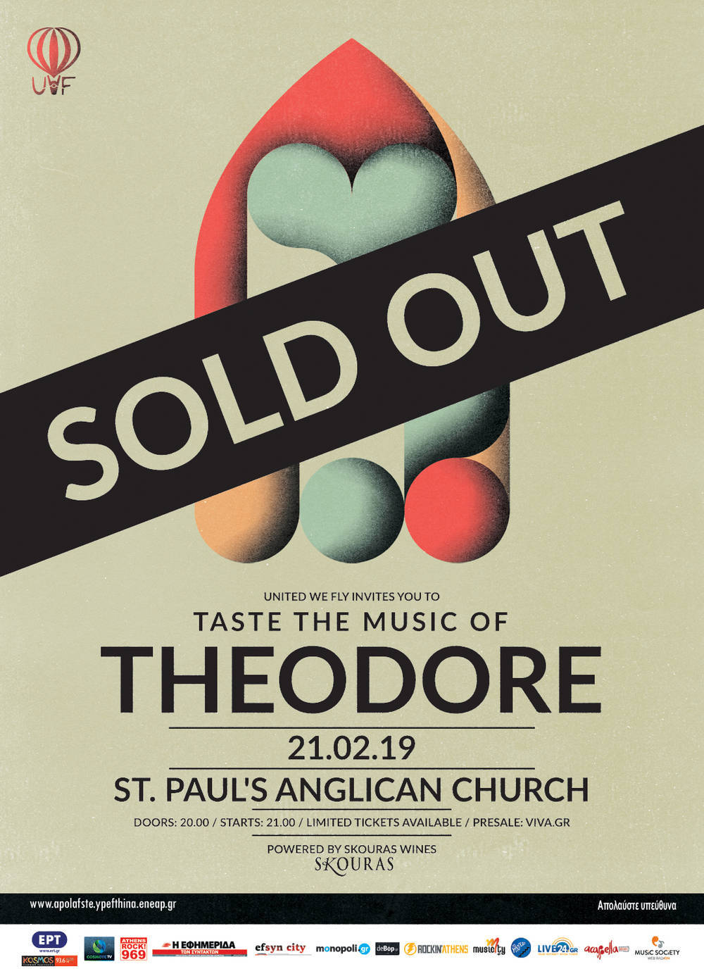 Η United We Fly εγκαινιάζει την ενότητα "Taste the Music", μια σειρά συναυλιών, στις οποίες αγαπημένοι, αλλά και ανερχόμενοι, νέοι καλλιτέχνες, αλληλεπιδρούν με διάθεση πειραματισμού και υπόσχονται ιδιαίτερες εμφανίσεις, εμπνευσμένες από την ξεχωριστή ατμόσφαιρα μοναδικών χώρων. Όλα ξεκινούν από τον υποβλητικό χώρο της Αγγλικανικής Εκκλησίας του Αγίου Παύλου την Πέμπτη 21 Φεβρουαρίου με ένα semi-acoustic live του Theodore.