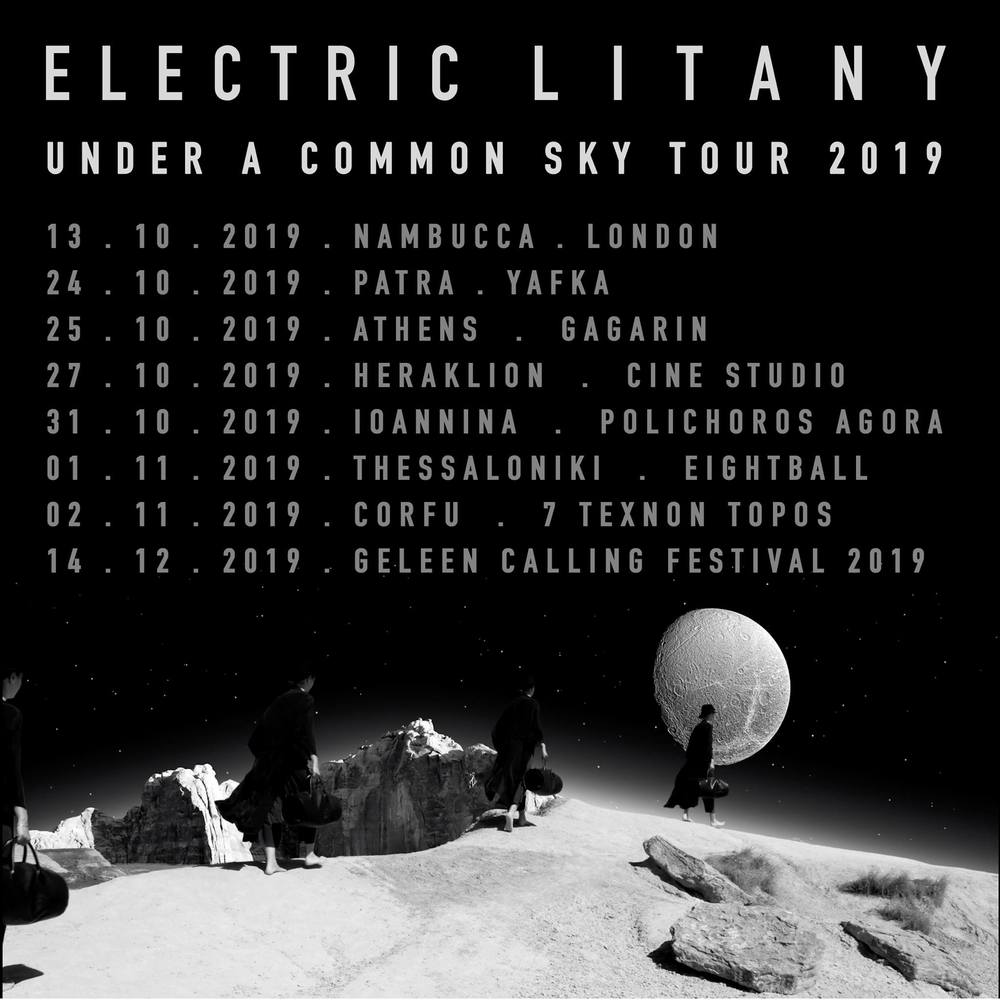 Οι Electric Litany είναι σε tour και από την ερχόμενη Πέμπτη 24/10 "πατάνε" Ελλάδα, αρχής γενομένης από την Γιάφκα της Πάτρας. Εν συνεχεία θα εμφανιστούν στην Αθήνα (25/10, Gagarin), στο Ηράκλειο (27/10, Cine Studio), στα Ιωάννινα (31/10, Agora), στη Θεσσαλονίκη (1/11, Eightball) και στην Κέρκυρα (2/11, 7 Texnon Topos).