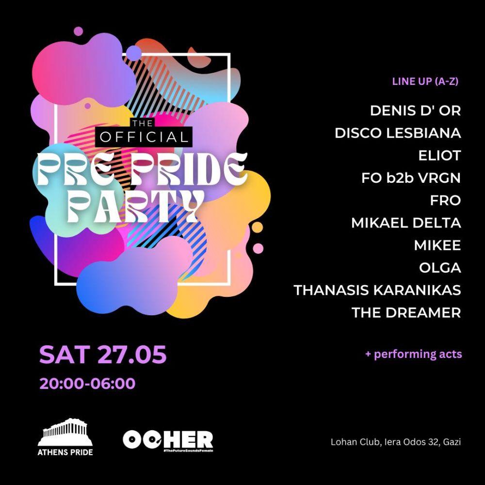 Το official pre-Pride Party του Athens Pride επιστρέφει δυναμικά μετά από 4 χρόνια αισθητής απουσίας, το Σάββατο 27 Μαΐου, για ένα βράδυ που θα ξεκινήσει στις 20.00 και θα τελειώσει τις πρώτες πρωινές ώρες με ασταμάτητη μουσική, dj sets, performances και ένα από τα πιο σημαντικά fundraising events του φετινού Φεστιβάλ Υπερηφάνειας.