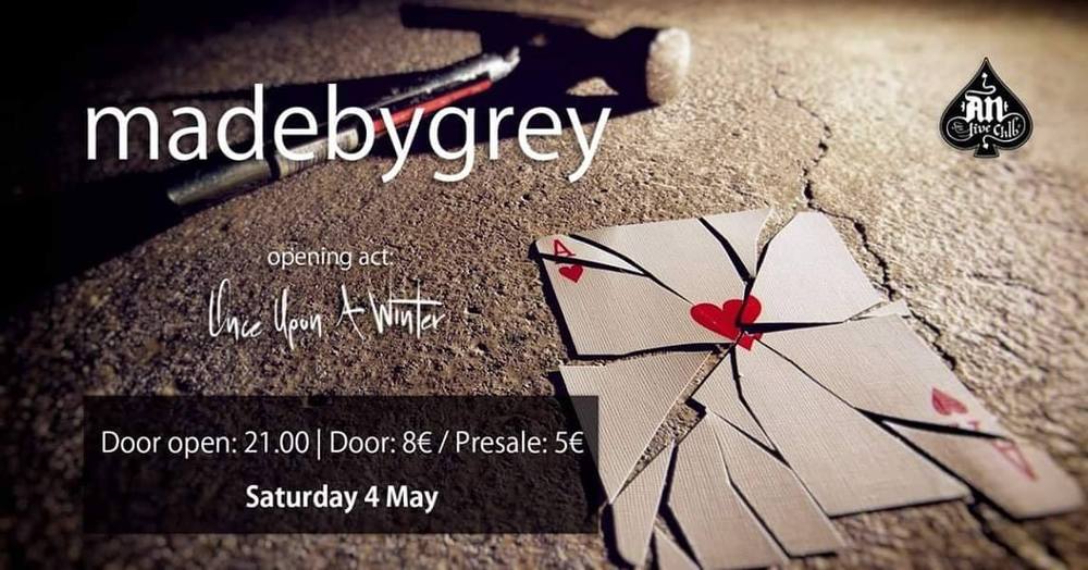 Το Σάββατο 4 Μαΐου 2019 ο Made by Grey θα ανέβει στη σκηνή του ιστορικού An Club, για να μοιραστεί μαζί μας ζωντανά ατομοσφαιρικές συνθέσεις από τις έως τώρα κυκλοφορίες του αλλά και νέο υλικό από τον επερχόμενο τρίτο δίσκο του “Music for the Deprived”. Επί σκηνής θα βρεθεί πλαισιωμένος από τους: Βαγγέλη Τσιμπλάκη (Λευκή Συμφωνία) στα τύμπανα, Άννα Δρόσου στο μπάσο, Χρύσα Φραγκάκη στo βιολί, Σωτήρη Μαλεζίδη (Autumn Machinery) στην κιθάρα και Λάμπη Μητσιάκη στο τρομπόνι.