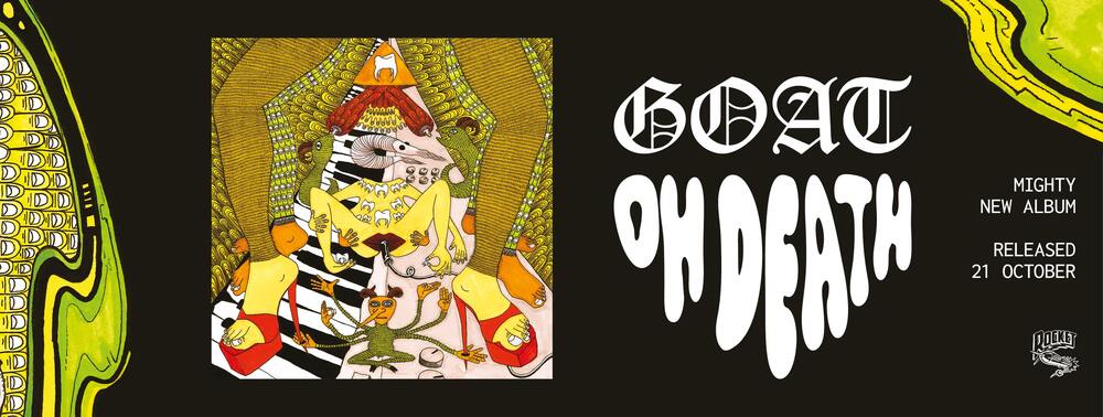 Οι Goat έχουν έτοιμο νέο άλμπουμ - θα ονομάζεται "Oh Death" και θα μας έρθει στις 21 Οκτωβρίου. Το αρκούντως χαοτικό εξώφυλλο το βλέπετε παραπάνω... Μαζί με τα μαντάτα για τη νέα κυκλοφορία, έχουμε και ένα πρώτο κομμάτι διαθέσιμο προς ακρόαση, τον funko-ειδή δυναμίτη, "Under No Nation".