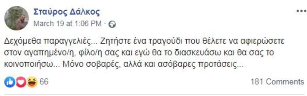Όλα ξεκίνησαν από αυτό το ποστ του Σταύρου Δάλκου στο facebook στις 19 του περασμένου Μαρτίου:
