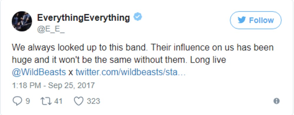 Χθες, με ένα γράμμα που ανέβασαν στο Twitter, ανακοίνωσαν το τέλος της μπάντας μετά από 15 χρόνια. Foals και Everything Everything απέτισαν φόρο τιμής στην τετράδα που αποφάσισε ότι ήταν «time to leave this orbit».