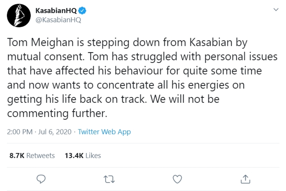 Με μια λιτή ανακοίνωση στο twitter οι Kasabian ανακοίνωσαν, πως ο Tom Meighan frontman και ψυχή της μπάντας αποχωρεί λόγω προσωπικών προβλημάτων. Μπορεί τα lads από το Leicester να μας "χάλασαν" αρκετά ως και πάρα πολύ με τα τελευταία τους δύο άλμπουμ, αλλά δε σταμάτησα ποτέ να τους αγαπώ και να τους θεωρώ μια από τις εμβληματικότερες μπάντες των 00s. Ακόμα και όταν βγήκαν, το "48:13" (2014) και μετά το "For Crying Out Loud" (2017) δυο άλμπουμ κάτω του μετρίου πίστευα ότι οι Kasabian θα το γυρίσουν και θα ξαναβγάλουν ένα άλμπουμ που θα γράψει ιστορία. Μάλιστα, τον Αύγουστο του 2019 είχαν ανεβάσει μια φωτογραφία στο instagram στην οποία προλόγιζαν το έβδομο άλμπουμ τους (check here). Έπεσα έξω και αντ' αυτού πλέον μπορούμε να λέμέ ότι διαλύθηκαν, γιατί η αποχώρηση του Meighan στην ουσία είναι η διάλυση της μπάντας. Νιώθω τυχερός που πρόλαβα να δω αυτή την τυπάρα πάνω στη σκηνή 4 φορές και κρίμα που δεν είναι καλά και έπρεπε να αποχωρήσει από το γκρουπ για να μαζέψει τα κομμάτια του.