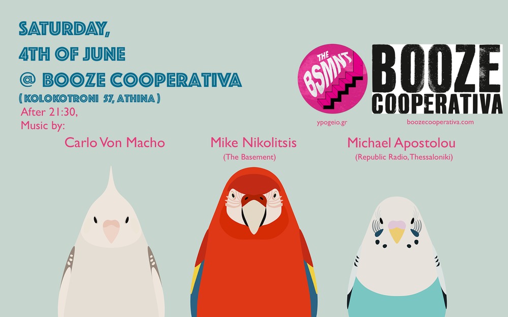 Αρκετός καιρός πέρασε από το τελευταίο μας πάρτυ κι είπαμε να το ρίξουμε λίγο έξω, έτσι για να καλωσορίσουμε το Καλοκαίρι που μόλις μπήκε... BSMNT party λοιπόν, Σάββατο 4 Ιουνίου στο Booze Coοperativa (Κολοκοτρώνη 57), θα παίξουμε μουσικές τύπου Καλοκαιρινές και χαρούμενες, κομπλεξικές και κολλημένες, μονόχνωτες και παντελώς άγνωστες - you know, συνταγή που αποτυγχάνει, ποτέ δεν αλλάζει. Αφορμή η "κάθοδος" από τη Θεσσαλονίκη του Υπόγειου δορυφόρου Μιχάλη Αποστολίδη, ο οποίος κανόνισε το εν λόγω event χρησιμοποιώντας τα υποχθόνια κονέ του (βλ. Μαριλίνα Νασιάκου, επιμελήθηκε και το τέλειο αφισάκι μας). Στα decks μαζί μας θα είναι και ο πιστός αγέραστος στρατιώτης της μουσικής υποκουλτούρας, ο άνθρωπος που όταν πήγα πρώτη φορά σπίτι του δεν μπορούσα να μιλήσω για μισή ώρα χαζεύοντας τη δισκοθήκη του, ο ζεν πρεμιέ των Αθηναϊκών underground σοκακίων, ο Carlo Von Macho. Ελάτε και βοηθήστε μας να πετύχουμε τον απόλυτο στόχο μας: να πάμε σερί χωρίς ύπνο και κουμπωμένοι αβέρτα με αναβράζοντα depon στο Terra Vibe για να δούμε τους Last Shadow Puppets...