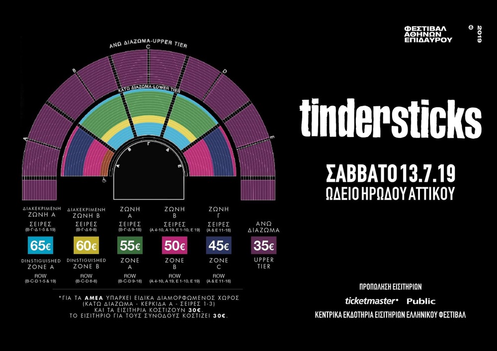 Τηλεφωνικό Κέντρο: 210 32 72000 (Δευτ. – Κυρ: 9.00 – 21.00) Public Stores Εκδοτήρια Ελληνικού Φεστιβάλ (Πανεπιστημίου 39, Στοά Πεσμαζόγλου από τα μέσα Μαΐου 2019) Οι μεταπωλητές των εισιτηρίων χρεώνουν έξοδα διαχείρισης ανάλογα με το τιμολόγιό τους.