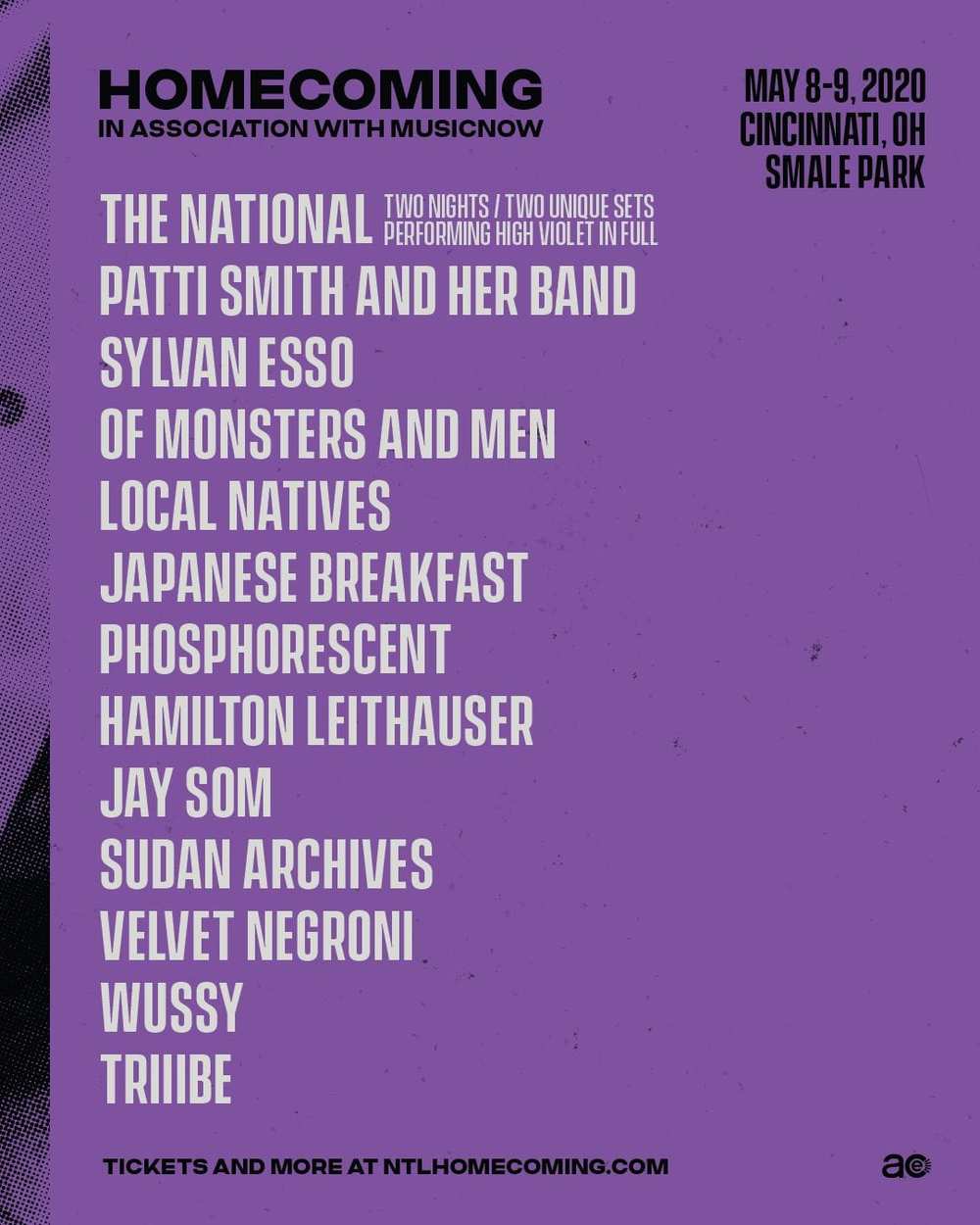 Αρχής γενομένης από το Cincinnati και το δικό τους Homecoming Festival, στις 8 & 9 Μαίου, οι National αναμένεται να παίξουν το πρώτο βράδυ ολόκληρο το "High Violet". Στο ίδιο φεστιβάλ αναμένεται να εμφανιστουν, μεταξύ άλλων, οι Patti Smith, Local Natives, Japanese Breakfast, Of Monsters and Men και άλλοι.