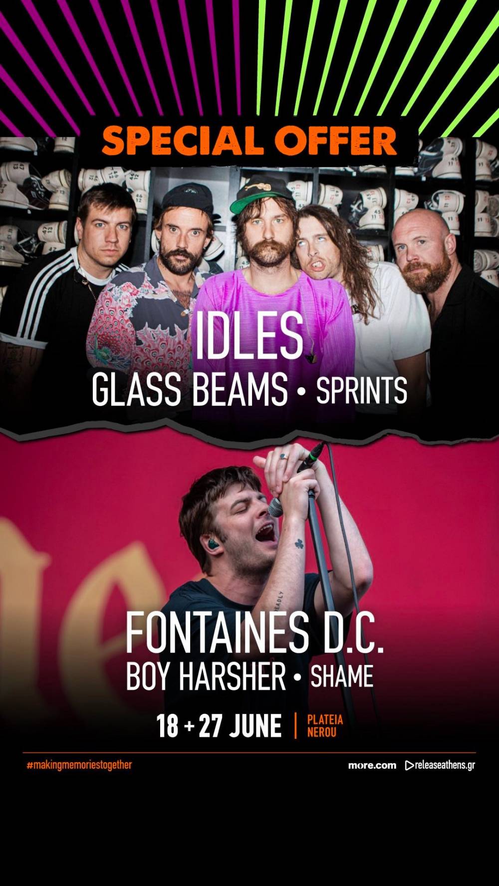 Διήμερο εισιτήριο: Idles, Glass Beams, Sprints (18/6 Πλατεία Νερού) + Fontaines DC, Boy Harsher, Shame (27/6 Πλατεία Νερού) 75 ευρώ (όφελος 23 €)