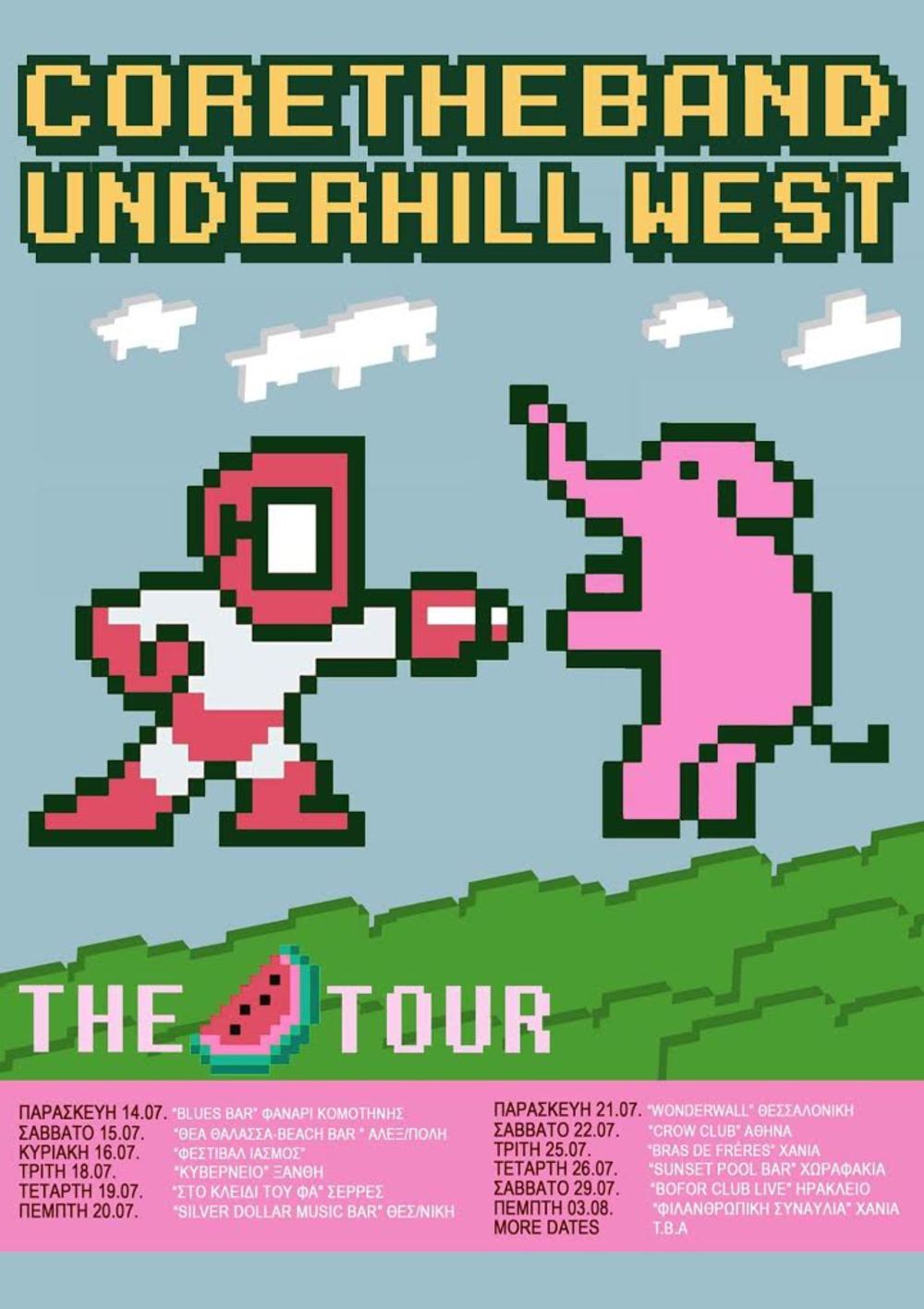 Οι εκρηκτικοί και φρέσκοι CORETHEBAND από τα Χανιά μαζί με τους άκρως entertaining Underhill West από την Ξάνθη σας προσκαλούν στην φετινή ΠΑΝΕΛΛΗΝΙΑ καλοκαιρινή ΠΕΡΙΟΔΕΙΑ τους με όνομα «THE WATERMELON TOUR» !